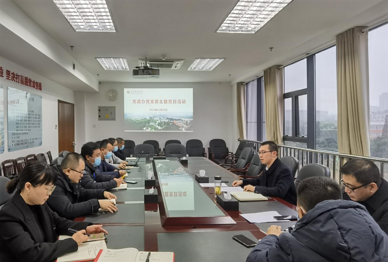11月18日下午5点,党政办支部在德诚楼612会议室召开政治学习专题会议,传达学习党的十九届六中全会精神,并对支部专题党建项目结题工作作了安排部署。