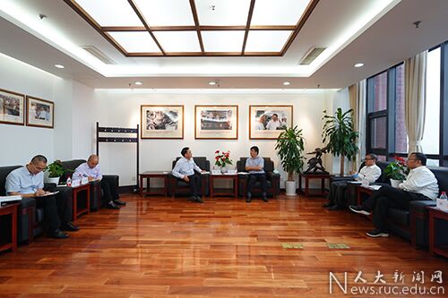 9月15日上午,学校党委书记廖斌带队访问中国人民大学。廖斌与中国人民大学校长刘伟,副校长刘元春、顾涛开展会谈,就加强双方合作进行交流。