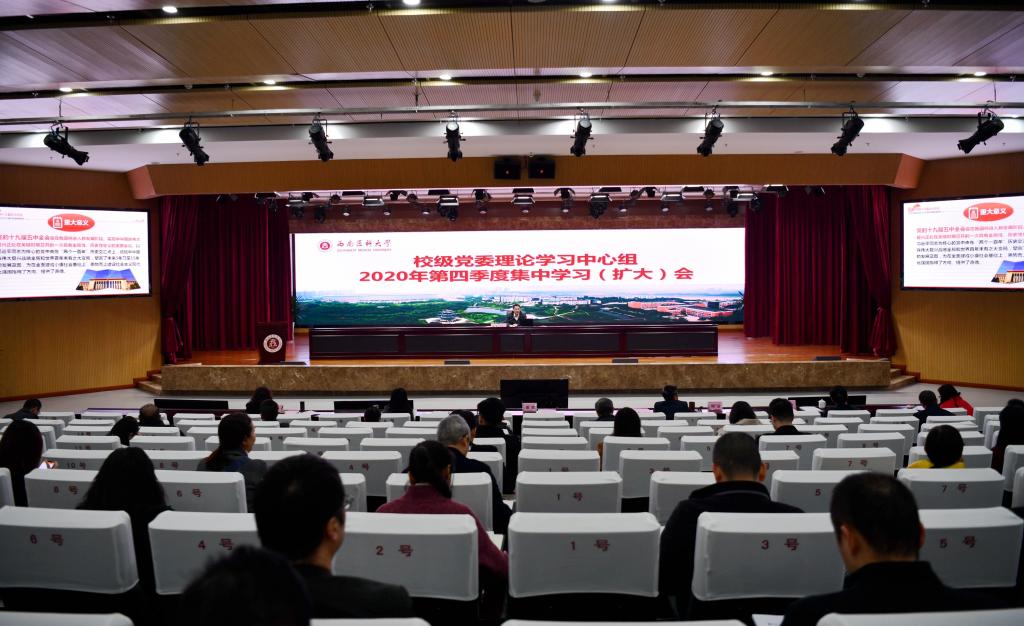 10月26-29日,中国共产党第十九届中央委员会第五次全体会议在北京胜利召开。学校领导干部带头学习宣讲作表率,党委常委会、校党委理论学习中心组及时专题学习,党委书记廖斌以迈向“十四五”为题作专题宣讲;各二级党组织负责人积极宣讲领学,理论讲师团专家走进部门、院系开展宣讲辅导,师生收看中央宣讲团报告会视频,学校官网、官微、电子显示屏广泛开展学习宣传,全校掀起学习党的十九届五中全会精神的热潮。同时,积极把学习成效转化为实际行动,推进学校“十四五”规划编制工作,全面加快学校事业发展。