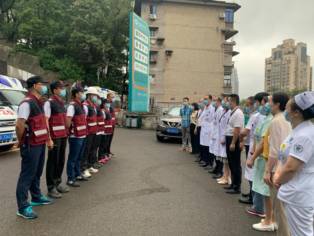 凌晨05时37分,西南医大附属医院川南医疗应急救援队由医院应急扶贫办主任尹崇光带队,急诊医学部胡迎春、周凯、赵平,心身医学科戴丽,儿童重症医学科袁霞,心脏大血管外科刘晶,救护车驾驶员许跃成、申乔木一行共有9名队员集结出发,06时03分抵达泸县人民医院开展救援工作。