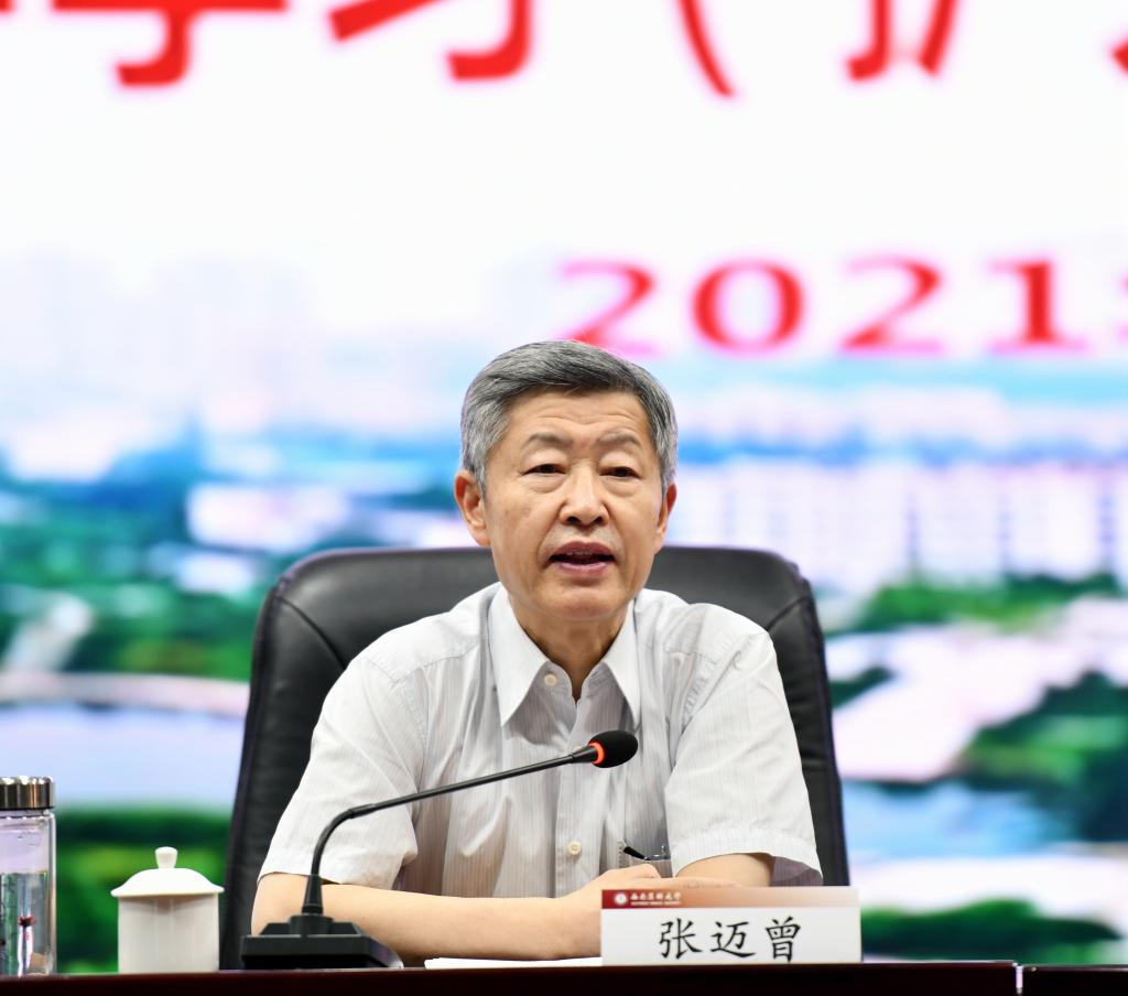 9月22日下午,校党委理论学习中心组2021年第三季度集中学习(扩大)会暨忠山大讲堂(第八讲)在德诚楼学术报告厅举行,西安交通大学原党委书记、陕西省人大常委会副主任张迈曾教授应邀作了《弘扬西迁精神 建设大学文化》专题讲座。讲座由学校党委书记廖斌主持。