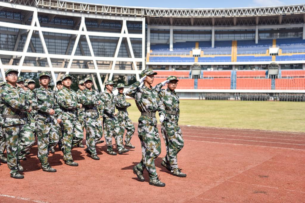 9月30日下午3点,beat365官方网站2021级新生军训汇演暨总结表彰在奥林匹克公园主体育馆举行。校领导廖斌、张春祥、李尚志、刘毅、刘广益、彭钢、何涛、聂敏海出席。学校党委常委冯天明、柏珂,武警泸州支队、龙马潭区人民武装部领导,相关职能部门负责人,二级院系负责人以及2021级学生科长、辅导员在现场观看了表演。
