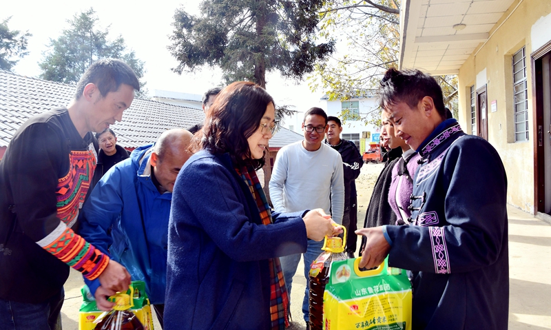 11月3日下午,廖斌一行在昭觉县相关部门负责人的陪同下,赴特布洛乡格吾村进行实地考察。在座谈会上,格吾村驻村第一书记胡东旭汇报了格吾村相关情况,特布洛乡乡长李木尔东汇报了特布洛乡相关情况。会议还举行了捐赠仪式和支部共建签约仪式,廖斌代表学校向特布洛乡格吾村捐赠了40.6万元“以购代捐”资金,学校机关党委党务支部、人事处支部与特布洛乡格吾村支部签订了支部共建协议,并向格吾村支部赠送了党建书籍。