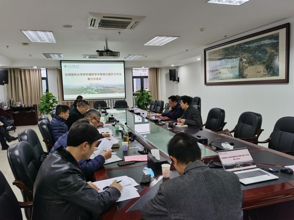 11月19日,beat365官方网站学科国际学术影响力提升工作第三次会议在城北校区德诚楼521会议室召开。学校党委副书记、校长张春祥,党委常委、副校长彭钢,党政办公室、人事处、发展规划处、科技处、研究生院、财务管理处、图书馆、基础医学院、临床医学院、药学院等负责人参会,会议由彭钢主持。