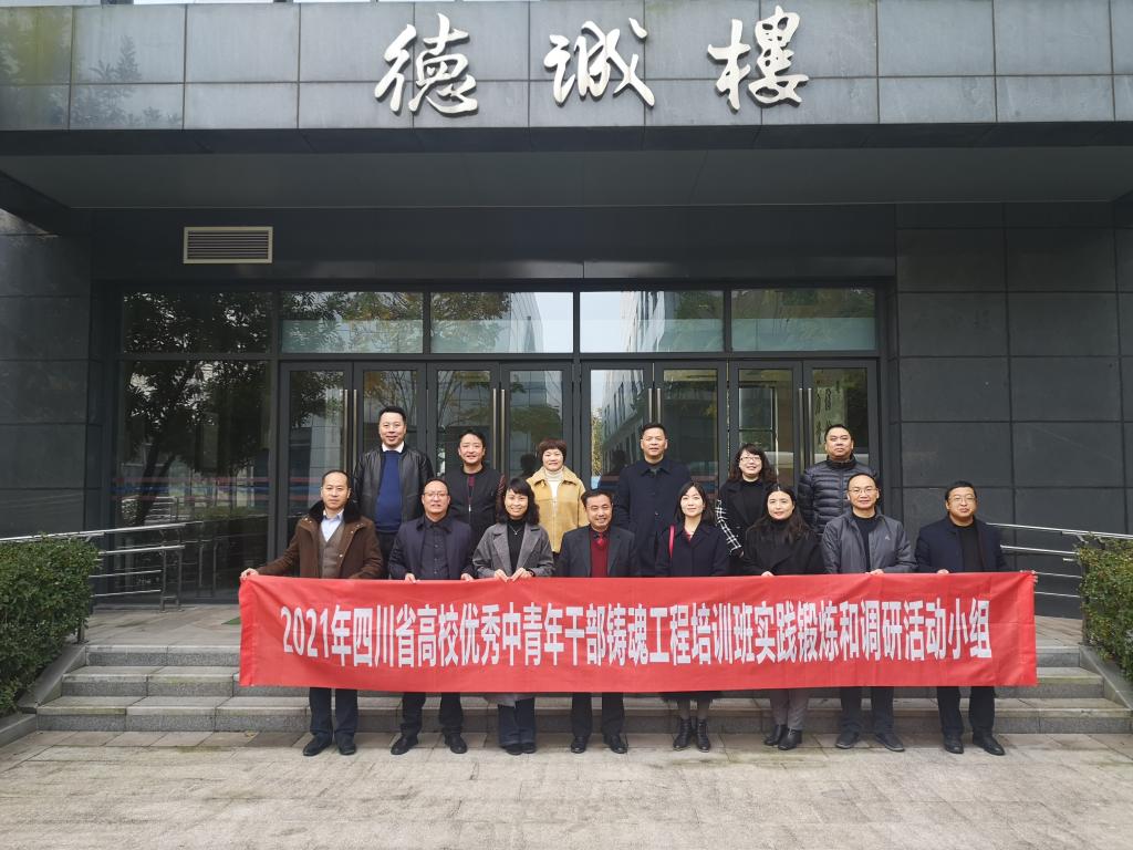 12月3日,四川省高校优秀中青年干部铸魂工程培训班第二组一行来校调研交流,并在城北校区第一会议室召开了座谈会。学校党委常委、副校长刘广益,党政办公室、教师工作部•人事处、学生工作部(处)、基建后勤处、财务管理处、大学科技园管理办公室等相关负责人员参加了座谈会。