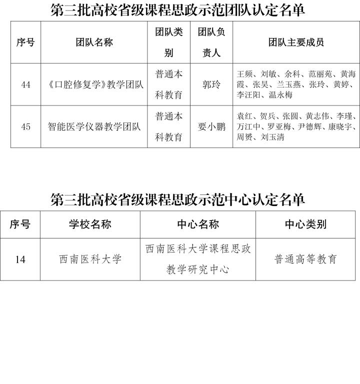近日,四川省教育厅发布《关于公布第三批高等学校省级课程思政示范项目认定结果的通知》(川教函〔2022〕199号),beat365官网《中医学》专业获批第三批高校省级课程思政示范专业,《系统解剖学》等7门课程获批第三批高校省级课程思政示范课程,《口腔修复学课程思政示范教学团队》等2个团队获批第三批高校省级课程思政示范教学团队认定名单,“beat365官方网站课程思政教学研究中心”获批第三批高校省级课程思政教学研究示范中心。