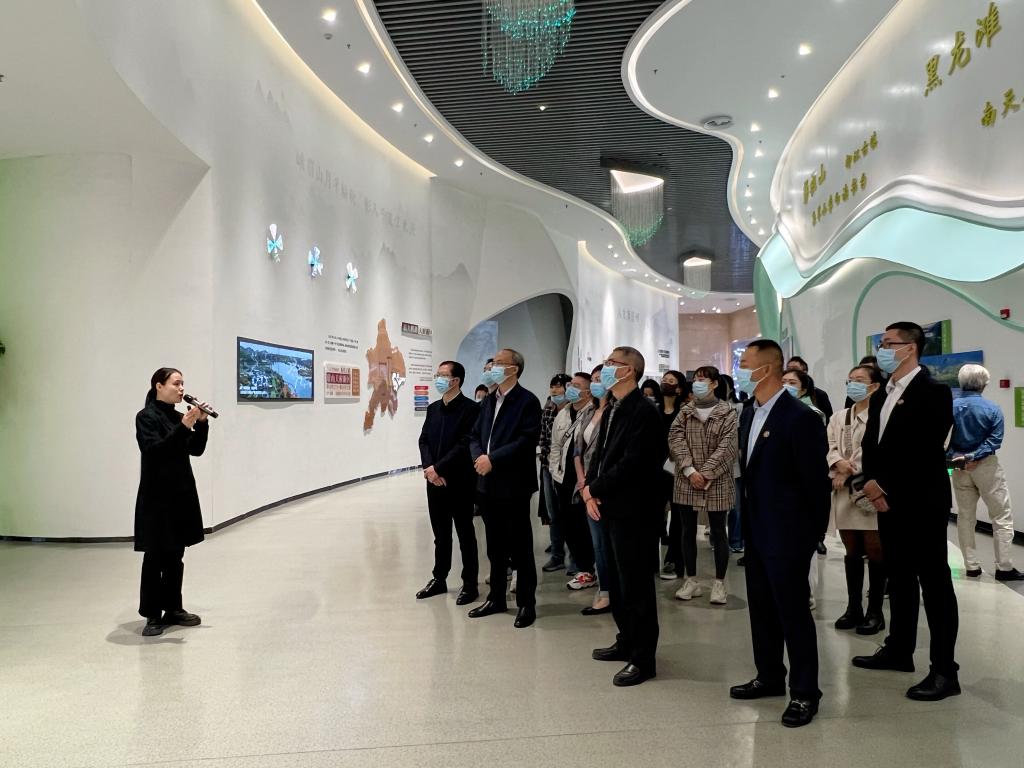 在眉山天府新区,考察团参观了眉山天府新区规划展示中心,并实地调研正在建设中的学校附属天府医院,详细了解了医院总体布局设计、建设规划、施工进度等方面情况。