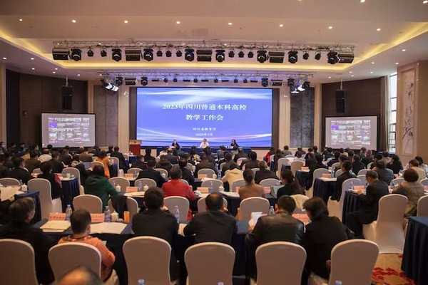3月23日下午,2023年四川普通本科高校教学工作会在成都召开,四川省委教育工委委员,教育厅党组成员、副厅长陈朝先出席会议并讲话,省教育厅二级巡视员程微梦主持会议。会议采用线上线下相结合的方式召开。学校党委常委、副校长何涛,教务处处长郑小莉现场参会,相关职能部门负责人和省教学指导委员会委员以及教务处全体人员在德诚楼一会议室分会场线上参会。