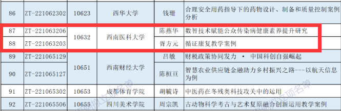 2022年12月,教育部学位中心启动2022年主题案例征集工作,聚焦“美丽中国”“大国智造”“中国科创”“中华传承”四大主题展开。经过“单位审核推荐”“专家分组评议”“案例专家委审核确认”三级评议审核,教育部学位中心最终对150家单位的420个申报项目进行立项。beat365官网今年实现案例征集一次性立项2项,同时也是四川省内11所立项高校中唯一的医科类大学。