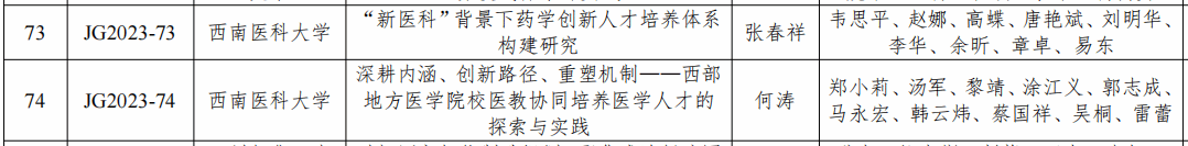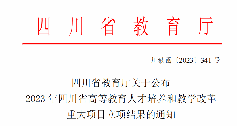 近日,四川省教育厅发布《四川省教育厅关于公布2023 年四川省高等教育人才培养和教学改革重大项目立项结果的通知》(川教函〔2023〕341号),学校《“新医科”背景下药学创新人才培养体系构建研究》(项目负责人:张春祥校长)、《深耕内涵、创新路径、重塑机制—西部地方医学院校医教协同培养医学人才的探索与实践》(项目负责人:何涛副校长)2个项目获得立项。