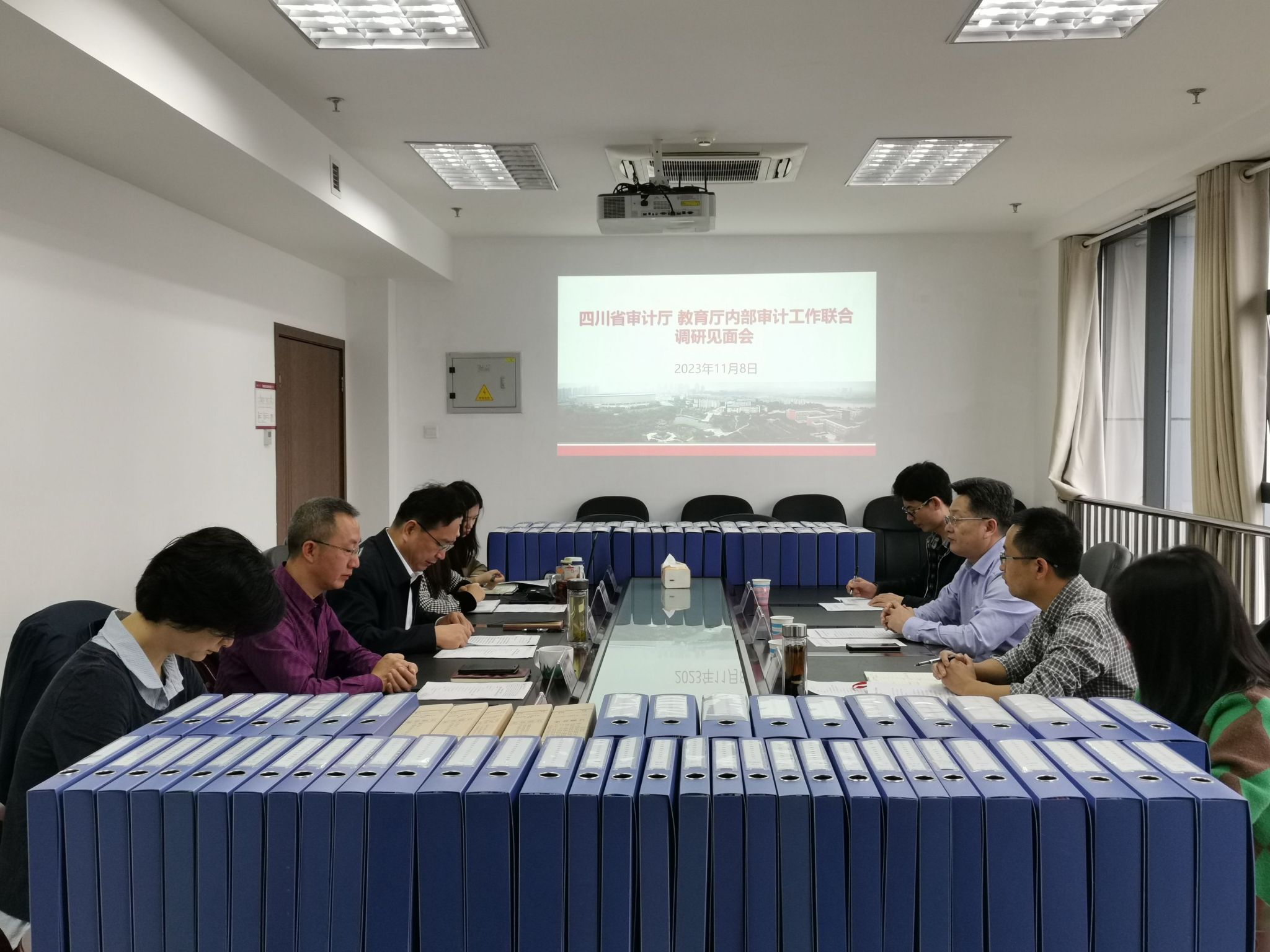 11月8日上午,四川省审计厅内部审计监督指导处处长马跃明、副处长董华、四级调研员吴文豪,教育厅教育督导审计处干部肖玲芳一行四人来校调研检查内部审计工作,在德诚楼912会议室召开了调研见面会。学校党委副书记、校长张春祥,审计处全体同志参加见面会。