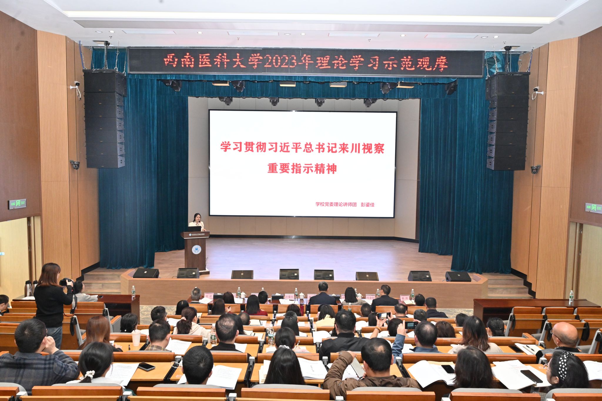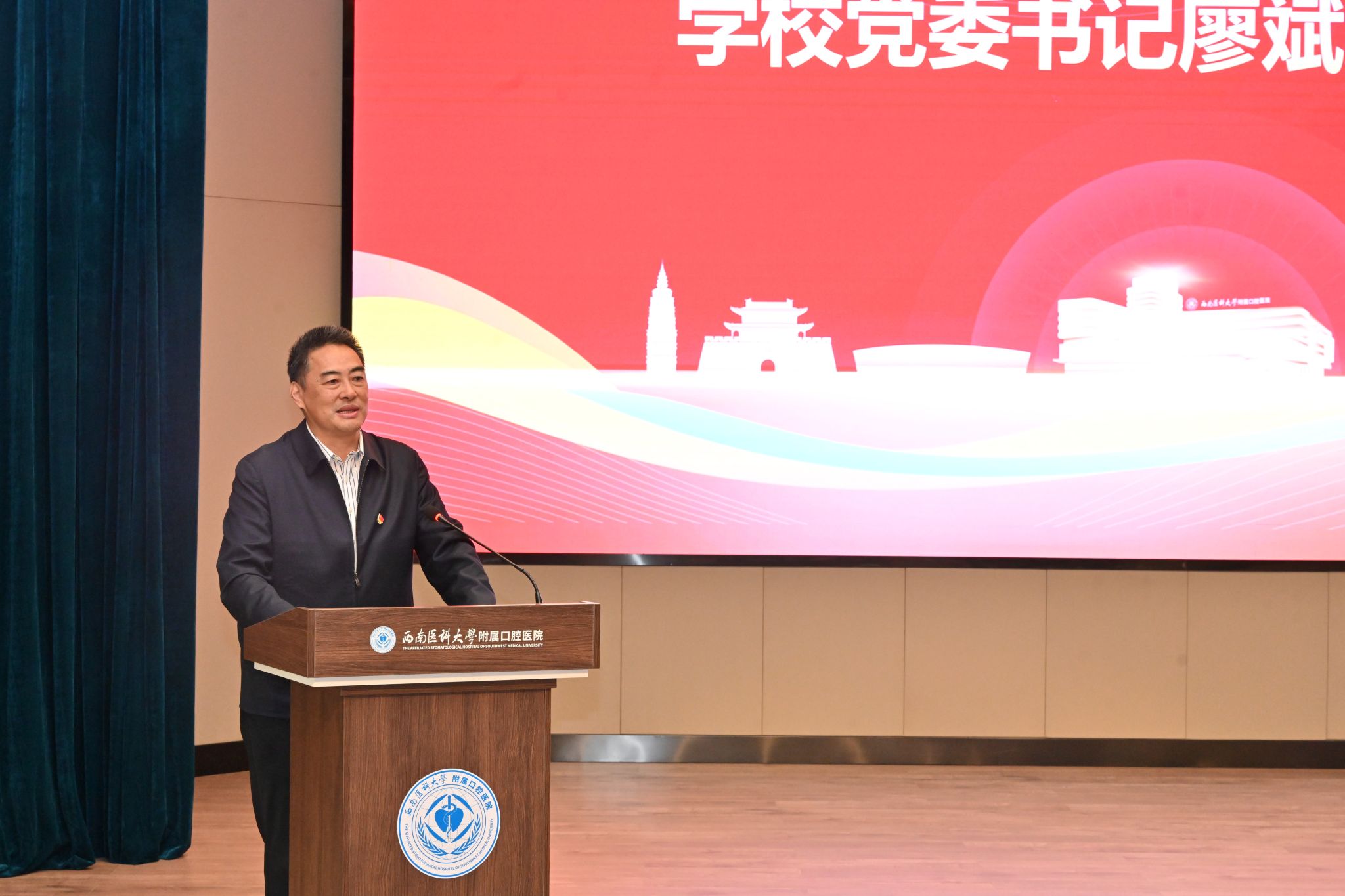 为深入学习贯彻习近平总书记来川视察重要指示精神,11月23日,学校2023年理论学习示范观摩活动在附属口腔医院云峰路院本部五楼学术报告厅举行。本次活动以“牢记使命慎终如始,务求实效推动发展——贯彻落实习近平总书记来川视察重要指示精神专题学习”为主题,由口腔医学院·附属口腔医院党委理论学习中心组作示范学习。学校党委书记廖斌,党委宣传部·统战部副部长唐开秀以及各二级党组织负责人出席观摩活动;口腔医学院·附属口腔医院党委理论学习中心组成员,党支部书记、职能部门主要负责人参加专题学习。会议由学校口腔医学院·附属口腔医院党委书记、中心组组长代天祥主持。