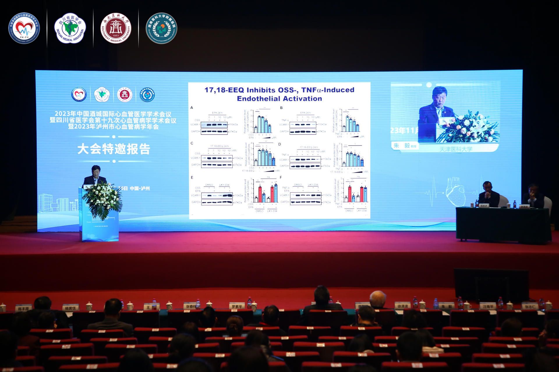 顾东风院士和董尔丹院士分别作了题为《冠心病和脑卒中发病的多基因风险预测评分、预防和临床应用》《强化健康中国战略支撑,夯实现代医学发展》的院士特邀报告,陈茂教授、张春祥教授、朱毅教授和陈晓平教授分别作了题为《心脏瓣膜病的治疗进展》《非编码RNA与代谢性心血管疾病》《鱼油抗动脉粥样硬化的新机制》《全程闭环遏制高血压风险--四川经验》的大会特邀报告。