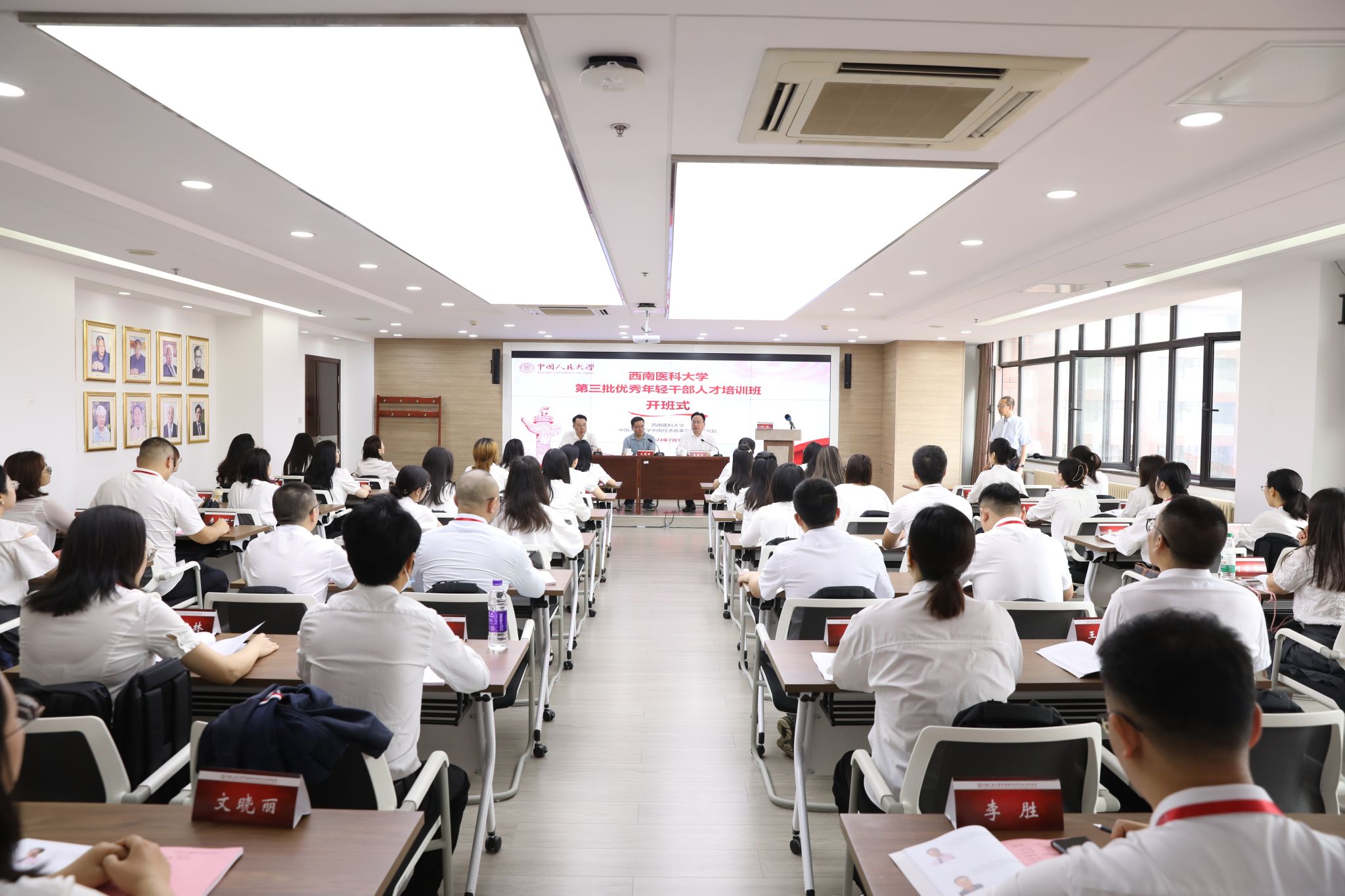 7月1日,beat365官方网站第三批优秀年轻干部人才培训班开班仪式在中国人民大学举行。中国人民大学党委常委、副校长支晓强,学校党委副书记、校长张春祥出席开班典礼并讲话。学校党政办公室主任唐柯、50名参培学员参加开班仪式。仪式由中国人民大学中国经济改革与发展研究院常务副院长于泽主持。