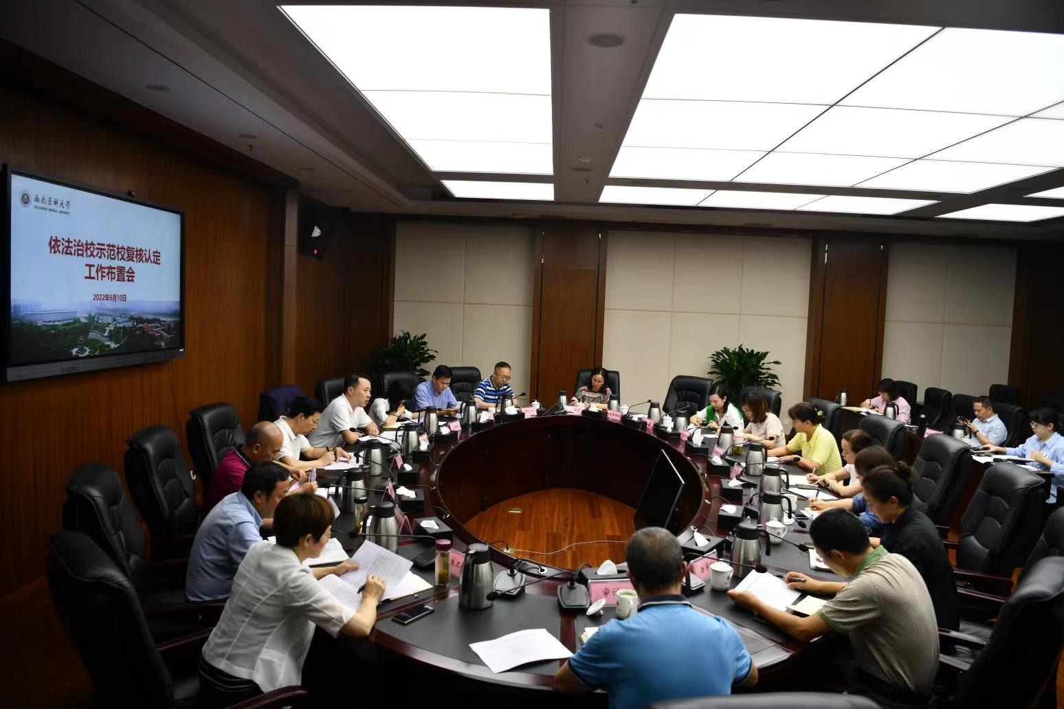6月11日下午,学校党委常委、副校长彭钢在城北一会议室专题布置依法治校示范校复核认定工作,学校相关部门(单位)负责人参加布置会。