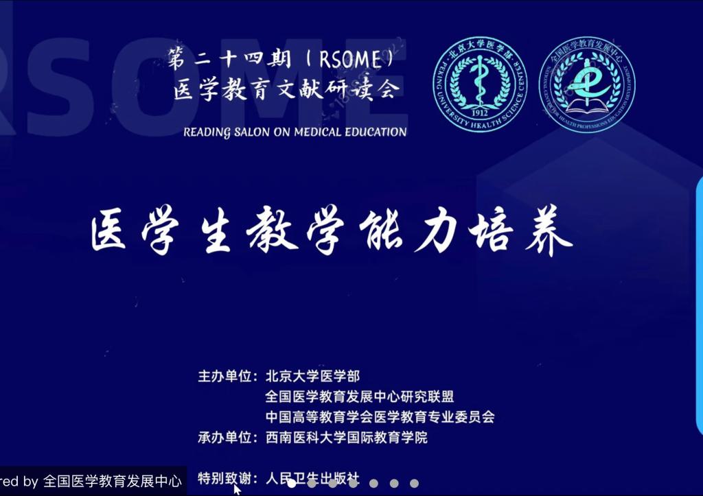 会上邀请的北京协和医院刘继海教授、浙江大学附属第二医院谢小洁教授进行了文献分享,刘继海教授从“why”的层面作“医学生为何要学习如何教学”的背景解读,强调了医学教育中对于医学生教学能力培养的重要性。谢小洁教授从“how”的层面作“关于培养医学生教学能力的方法”的分享,以“培养未来的医学教育工作者—学生主导的医学教育选修课开发和试点评估”为题,从医学教育的方法论视角,为我国未来临床教师和医学教育工作者的培养提供了新的思路。