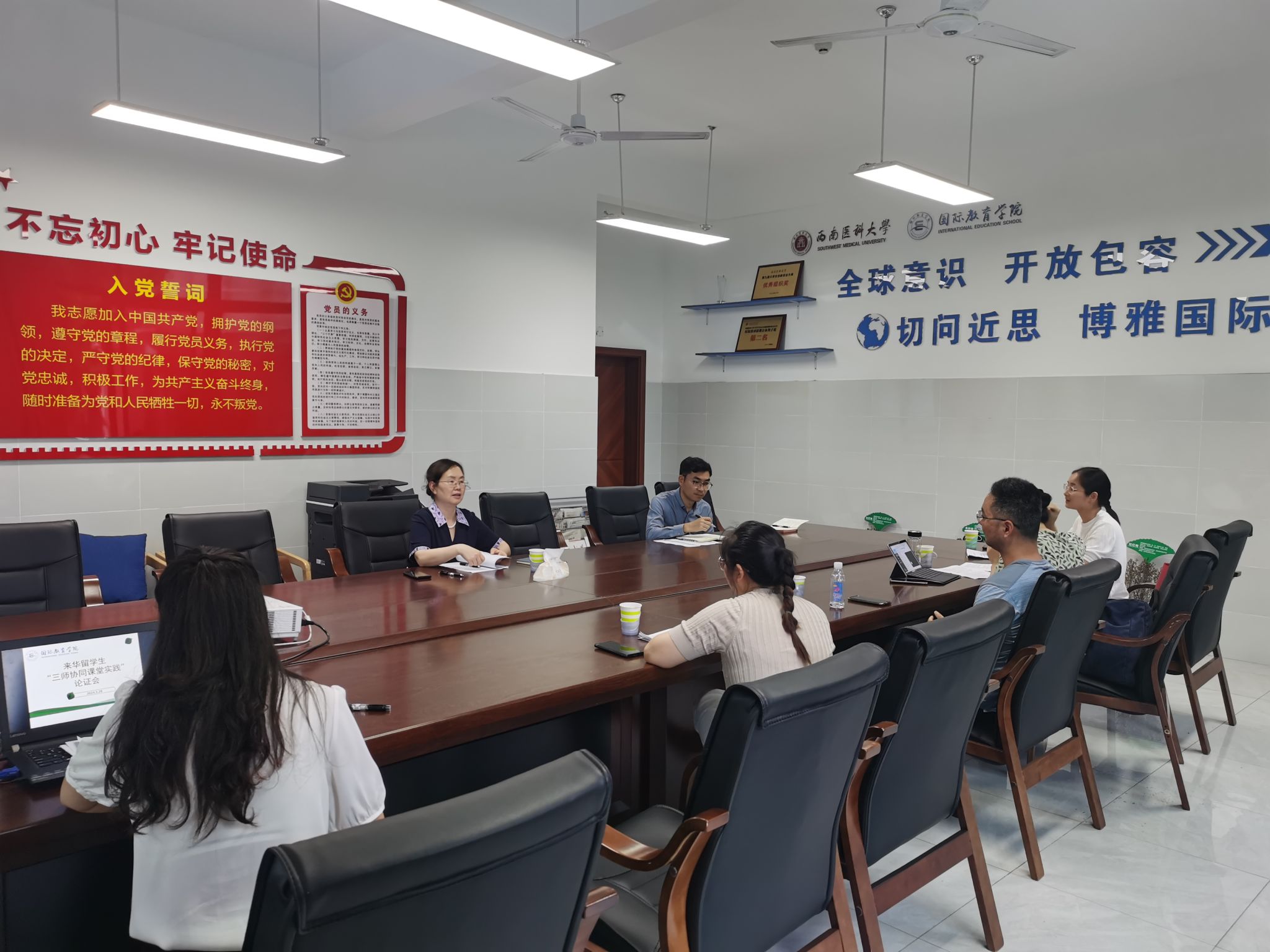 为贯彻落实国家教育数字化战略行动,528日下午,国际教育学院在城北校区文渊楼109会议室组织召开了来华留学生三师协同课堂实践论证会,基础医学、国际中文教育等课程的留学生任课教师参加了会议。会议由国际教育学院院长陈勤主持。