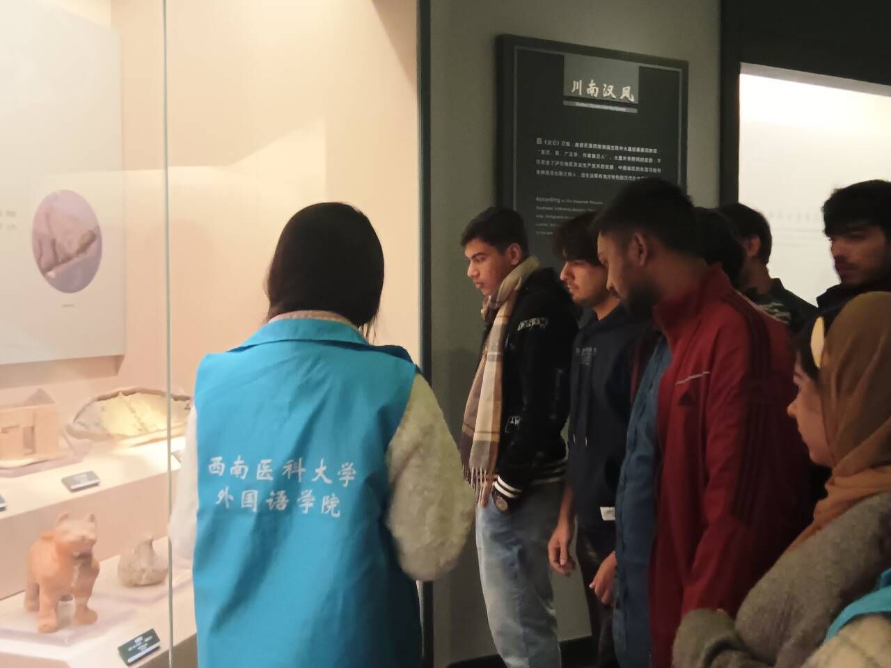 12月2日下午,为深入推进“五位一体”国际医学人才培养体系建设,国际教育学院联合外国语学院初雨萤火虫志愿队共同开展“参观泸州博物馆,深度体验中国历史文化”研学活动。学院国际学生辅导员带领来自印度、孟加拉国、巴基斯坦等国家学生参加此次活动。