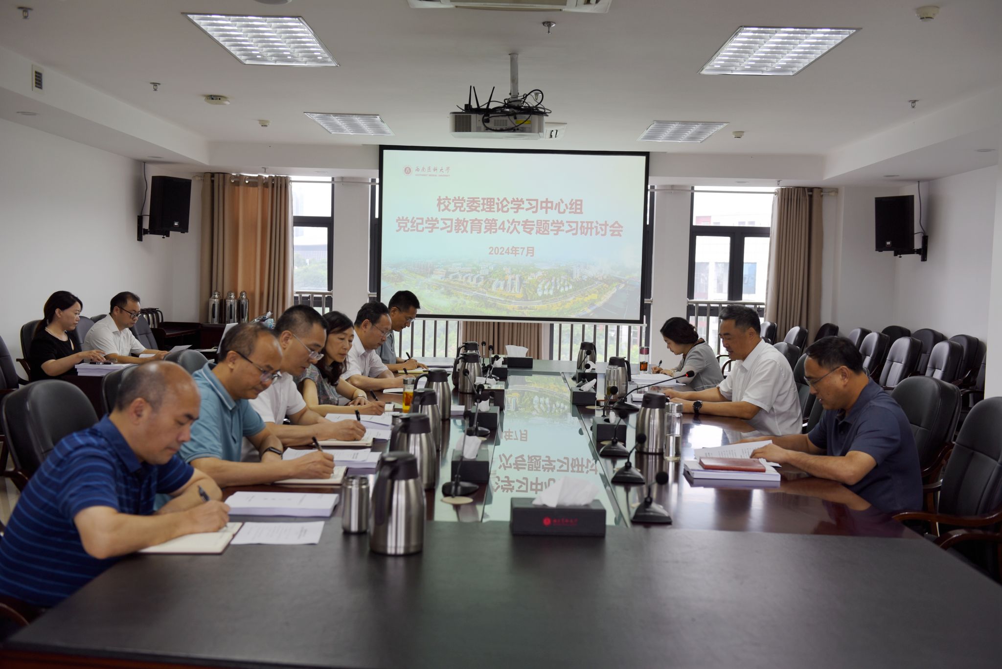 7月1日上午,学校党委理论学习中心组在城北校区德诚楼621会议室召开党纪学习教育第4次专题学习研讨会。学校党委理论学习中心组成员参加会议。党委书记、中心组组长廖斌主持会议。