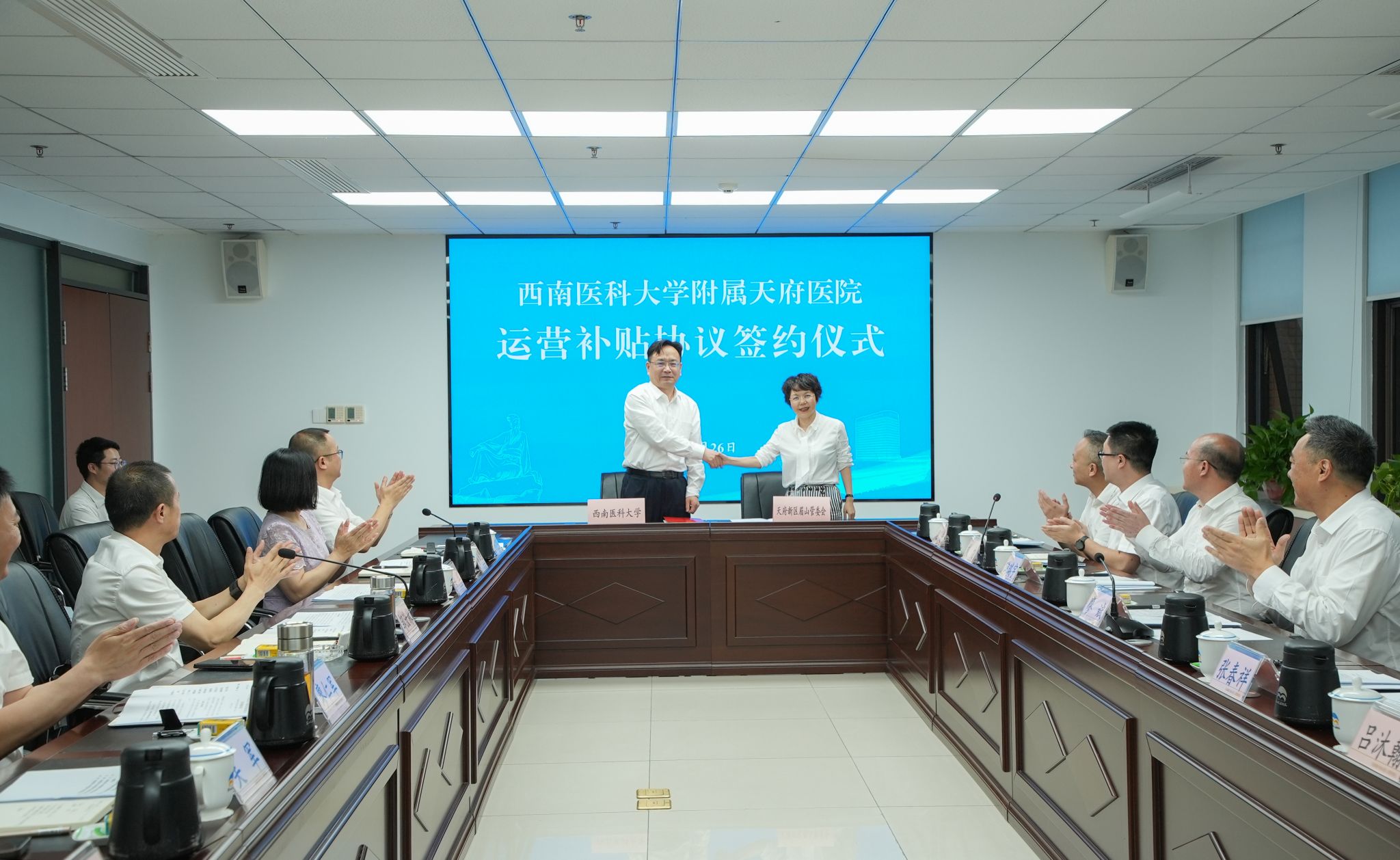 会上,双方会商研讨了beat365官方网站附属天府医院建设投运保障、运营开诊准备等工作,并签署《beat365官方网站附属第四医院(beat365官方网站附属天府医院)运营补贴协议》。