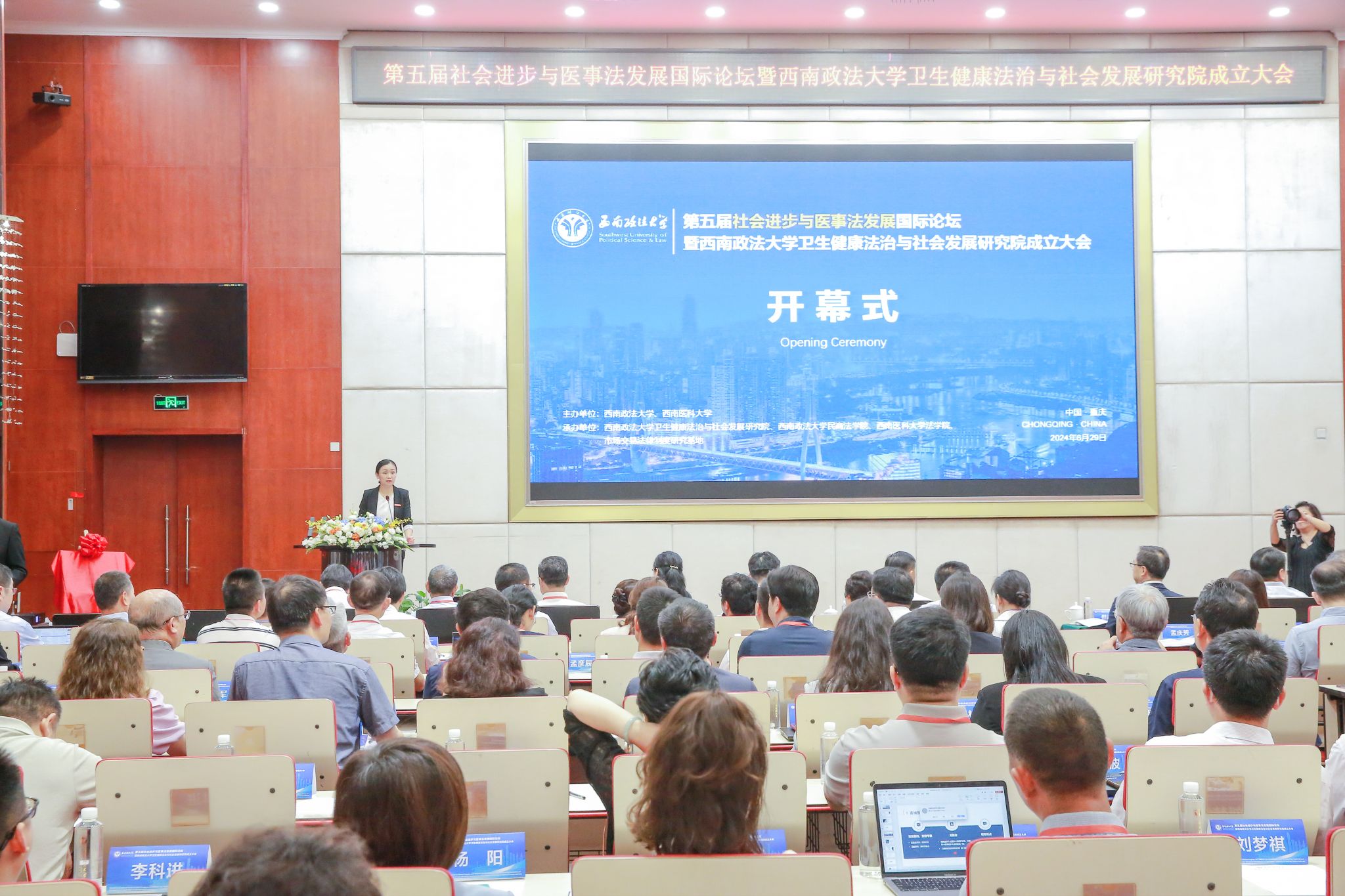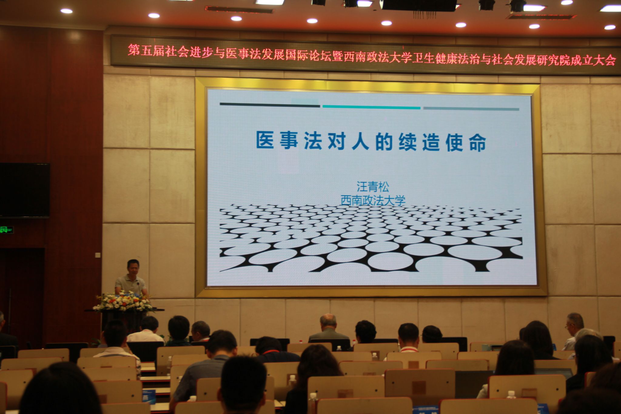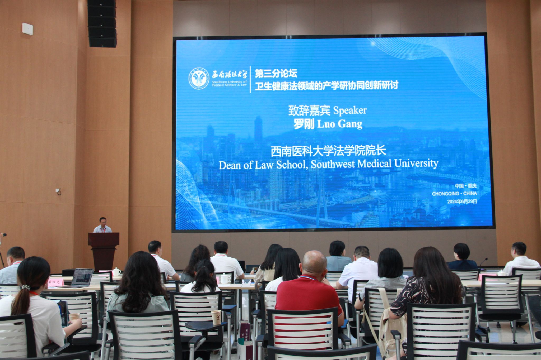 6月29日,由beat365官方网站和西南政法大学共同主办的“第五届社会进步与医事法发展国际论坛”在西南政法大学渝北校区举行。国家卫生健康委员会法规司副司长龚向光,中国卫生法学会常务副会长沙玉申,西南政法大学党委书记樊伟,学校党委副书记、校长张春祥,重庆市高级人民法院审判委员会专职委员贾科等100余名国内外专家、学者参加论坛。论坛开幕式由西南政法大学党委常委、副校长李燕主持。