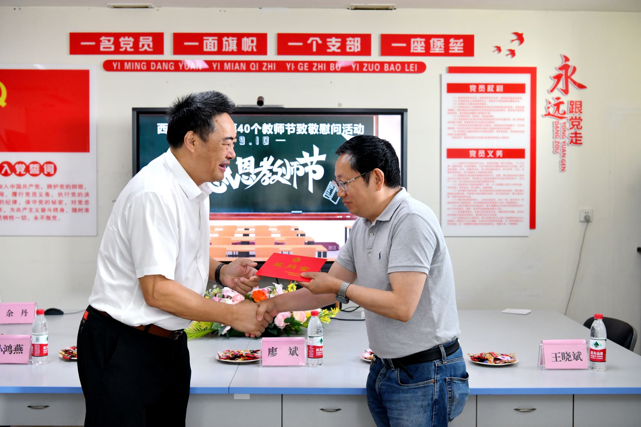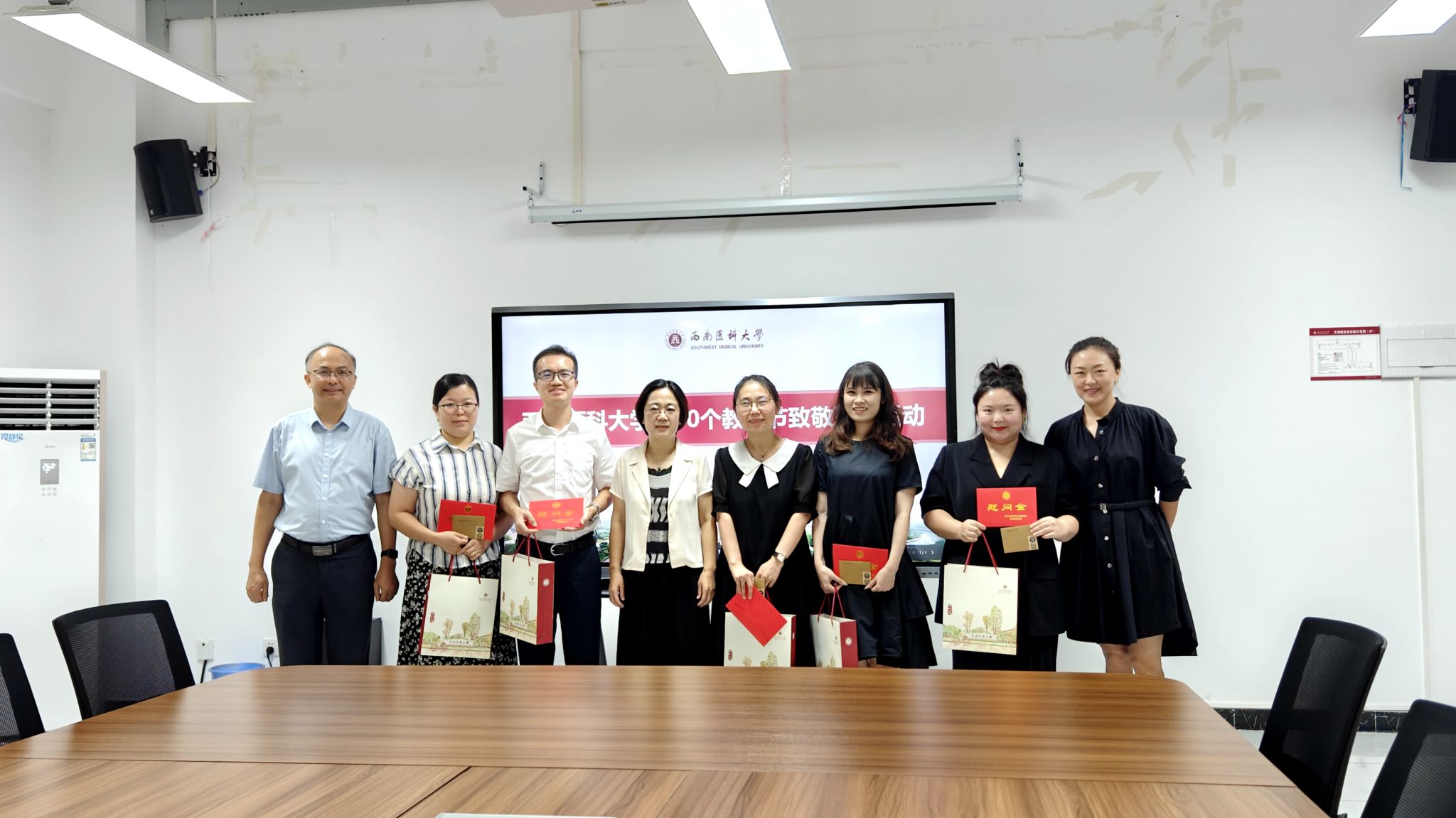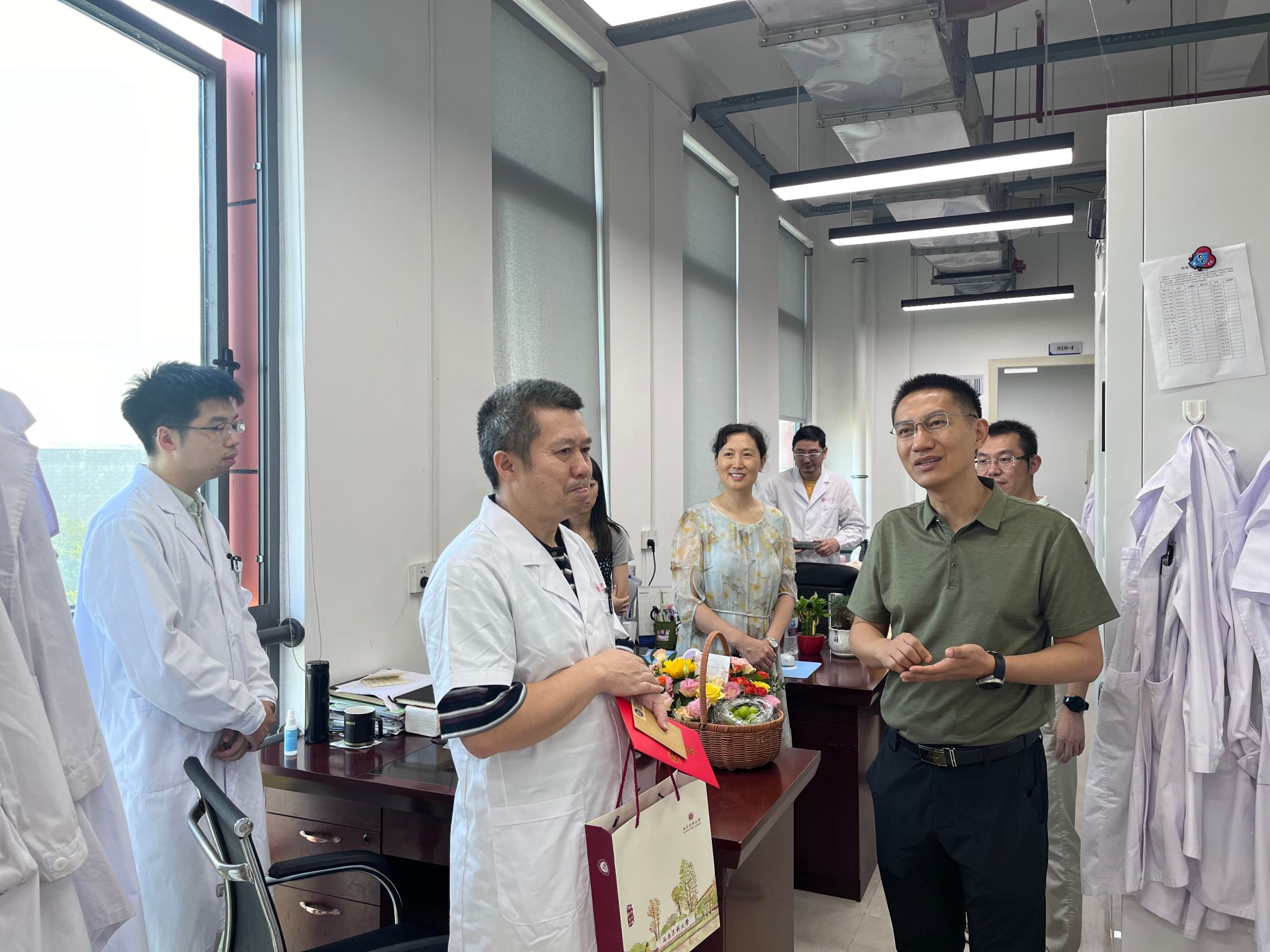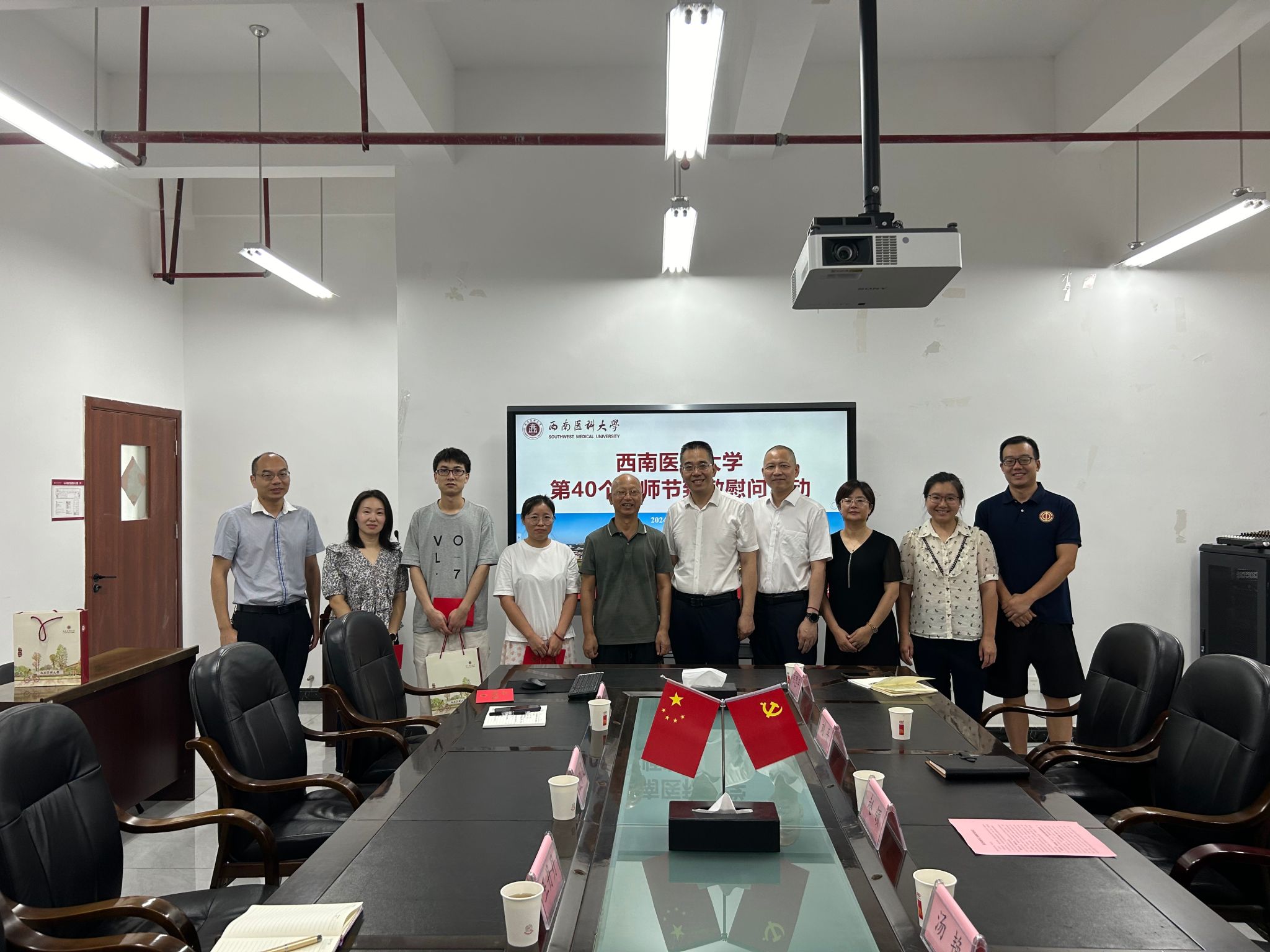 910日、11日,学校校领导廖斌、刘毅、张永红、聂敏海、代荣阳、江涌、赵领带领相关职能部门负责人,分别深入教室、实验室、临床科室等,开展教师节走访慰问活动,向在教学、科研、医疗一线工作,业绩突出、家庭困难的教师代表致以节日慰问。学校还为教师代表精心准备了贺卡和礼物,让广大师生深刻感受到了尊师重教的浓厚氛围。