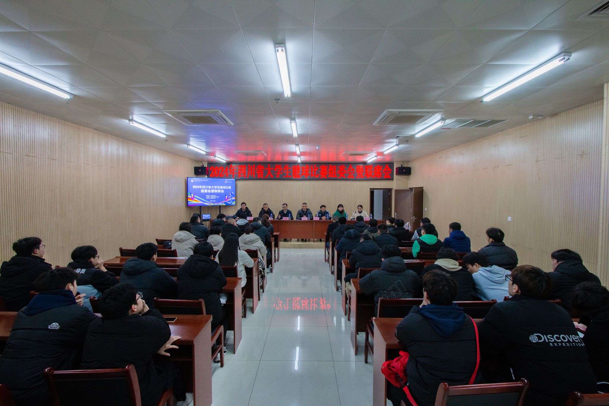 12月5日晚,2024年四川省大学生毽球比赛组委会暨联席会议在青年体育馆会议室召开。四川省大学生体育协会会长杨远波、竞训部部长吕志刚,beat365官网体育学院院长王定宣,本次赛事监督罗亚娟,裁判长廖健、副裁判长彭崴,各参赛高校的领队、教练员和运动员代表参加会议。会议由beat365官网体育学院党委书记邹小萍主持。