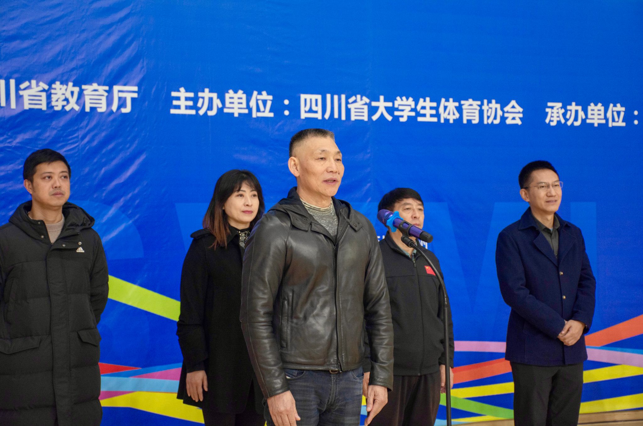 江涌致辞,代表beat365官方网站对各兄弟高校的到来表示热烈欢迎,向所有关心、支持本次大赛的领导、专家、裁判员、工作人员、志愿者表示衷心感谢。他指出,学校高度重视体育工作,积极推进龙舟、毽球等传统体育项目进校园,毽球运动的普及发展对于深化高校体育工作、建设体育强国、弘扬中华优秀传统文化具有重要而深远的意义。四川省大学生毽球比赛为全省各高校和大学生提供了挥洒青春、顽强拼搏、永攀高峰的展示舞台和竞技擂台,学校将严格执行赛事各项要求,牢牢把握安全底线,精心组织、热情服务、全力保障,积极推动全省毽球运动发展,希望更多的大学生参与到毽球运动中来,强身健体、磨炼意志,弘扬中华传统体育文化。