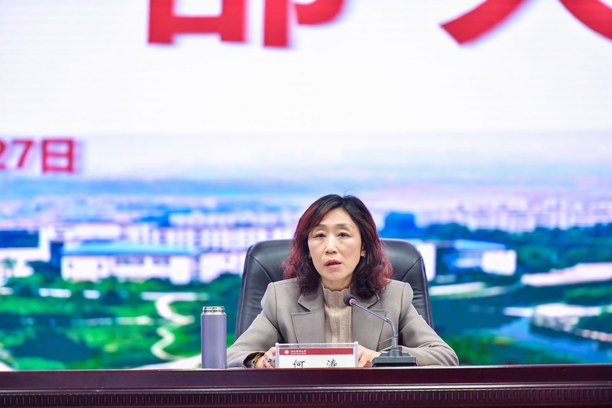 学校党委副书记、校长何涛通报学校寒假行政方面主要工作,并从深入推进治理体系改革、教育教学方面、学生管理方面、师资队伍建设方面、学科科研工作方面、对外交流合作方面、支撑保障和综合服务方面等安排布置3月行政主要工作。
