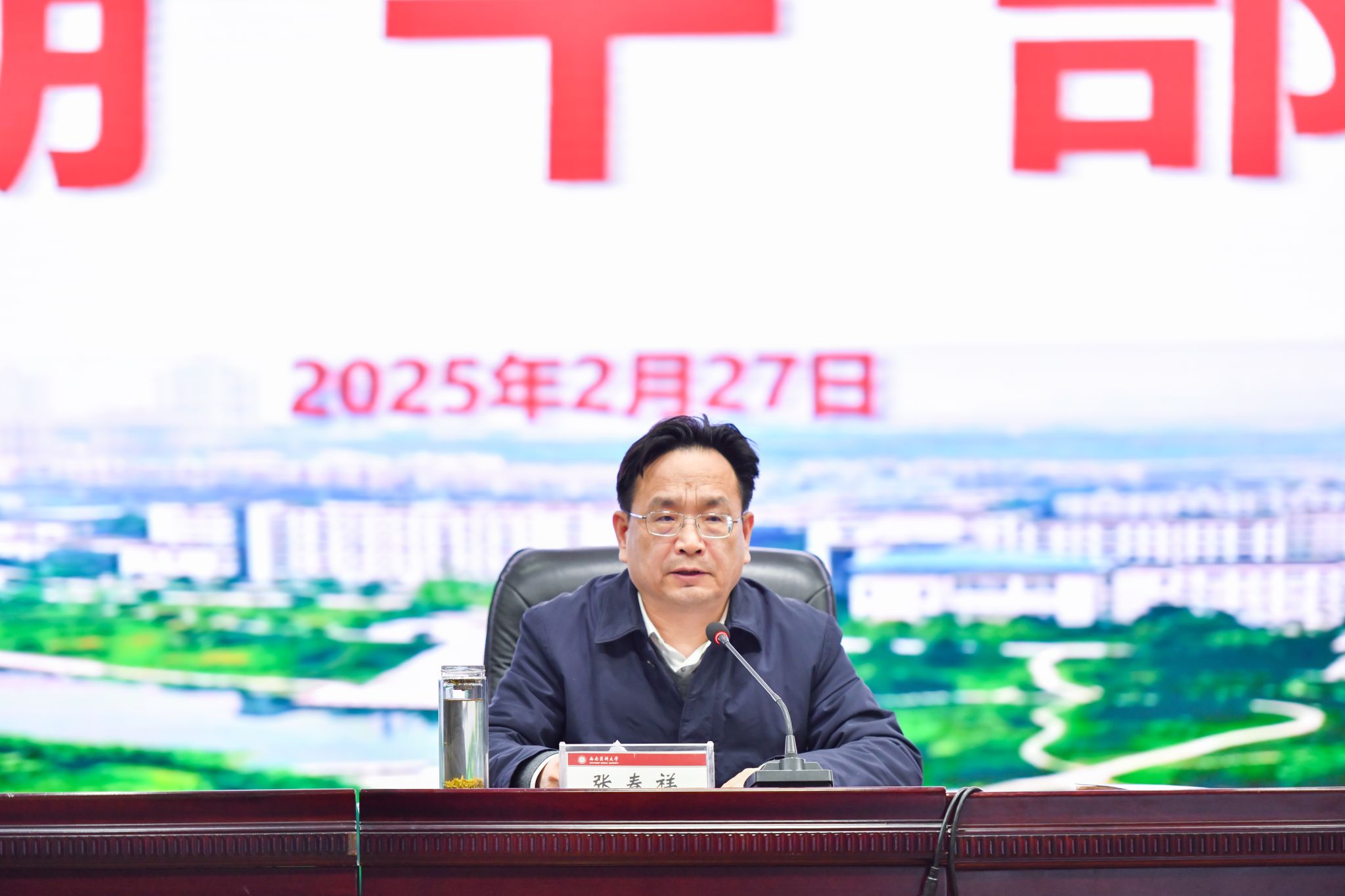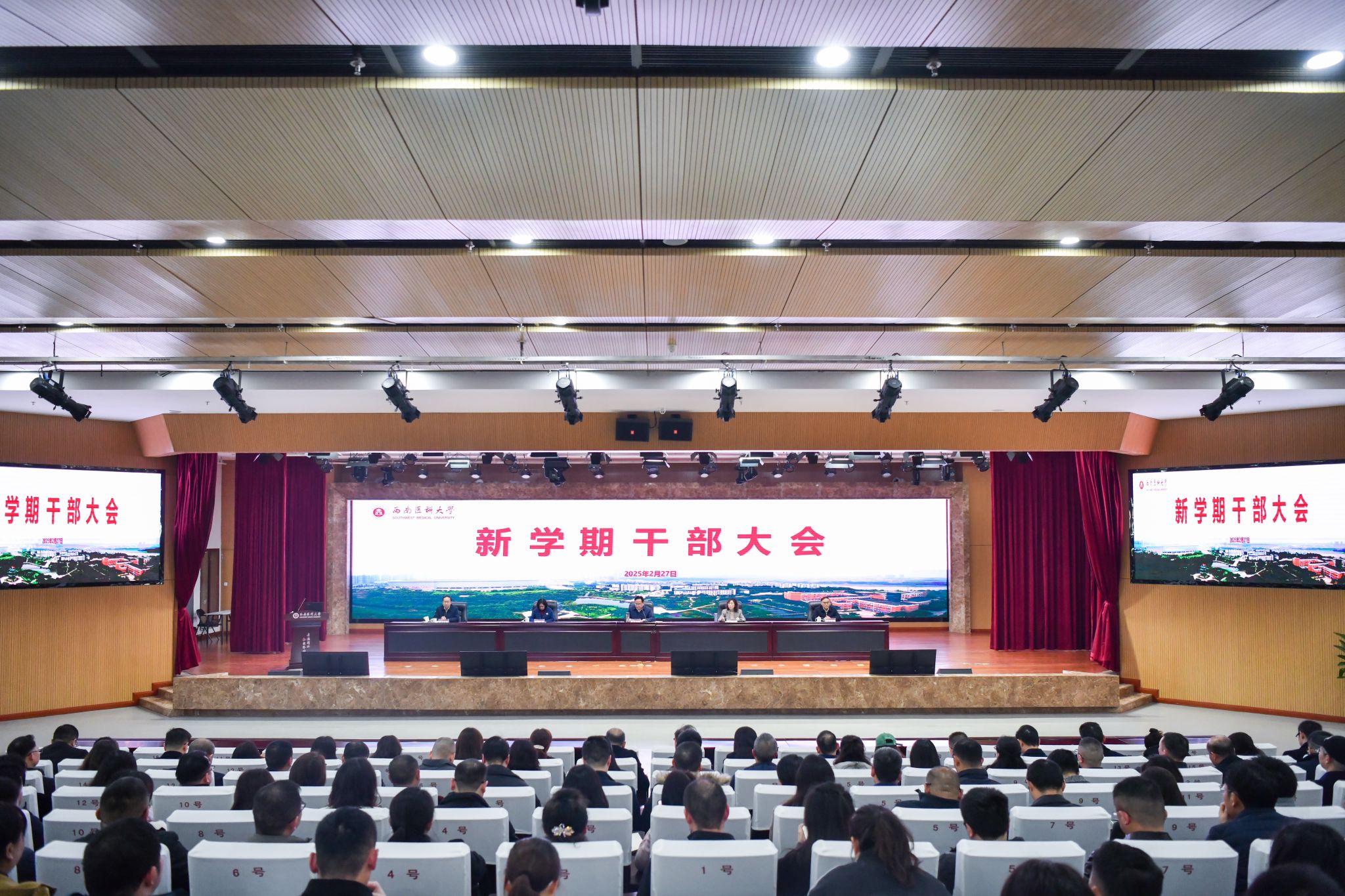 2月27日下午,beat365官方网站新学期干部大会在城北校区第一学术报告厅召开。全体在家校领导,纳入学校干部管理序列的处、科级领导干部,校本部党支部书记、教研室和实验室负责人,附属医院、附属中医医院党委办公室、院长办公室负责人,附属口腔医院、附属第四医院(附属天府医院)党政办公室负责人,附属自贡医院主要负责人等参加会议。