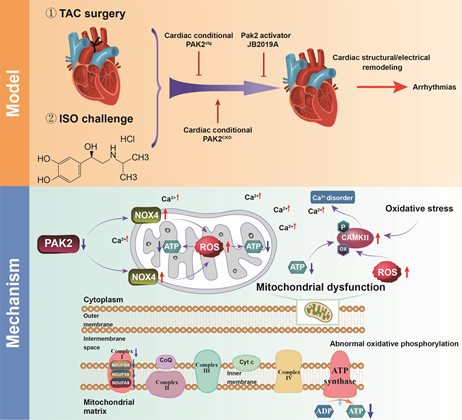 该研究首次利用心脏特异性Pak2敲除和过表达小鼠,并结合临床样本,揭示了Pak2在心脏电生理和钙离子调控中的重要作用,尤其是在心脏应激和肥厚条件下,Pak2通过调控线粒体功能和ROS的产生,维持心脏电活动的稳定性,从而防止心律失常的发生。这一发现为开发新型抗心律失常药物提供了重要的理论依据。