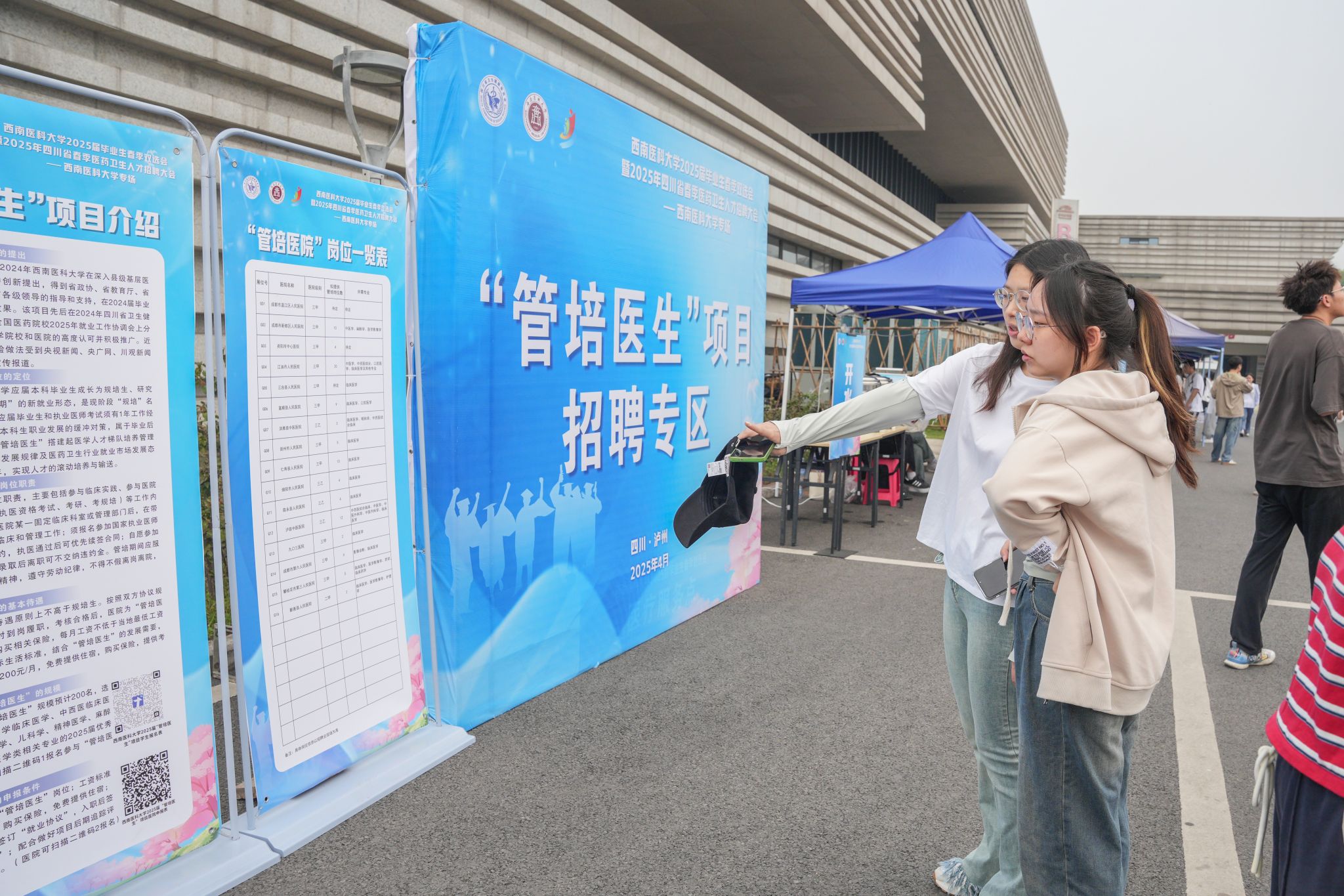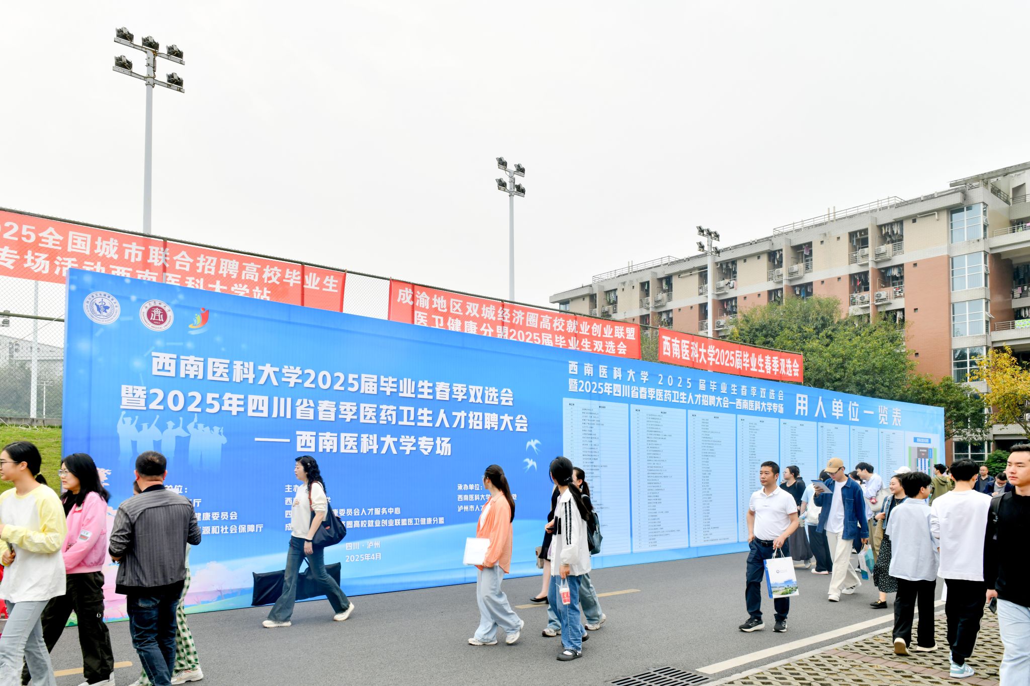 4月11日上午,学校在城北校区青年体育馆门前广场举办beat365官方网站2025届毕业生春季双选会暨2025年四川省春季医药卫生人才招聘大会(beat365官方网站专场)。