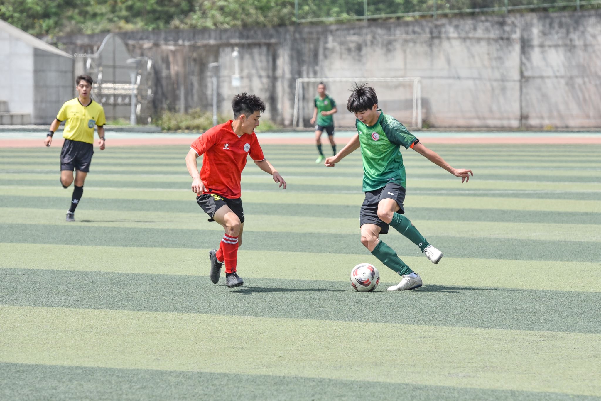 4月15日,西南财经大学与西南科技大学、成都大学与电子科技大学分别在两个赛场拉开战幕。球员们在绿茵场上奋力拼搏,时而快速突破,时而精准传球,时而上演精彩的射门,他们的每一次进攻和防守都牵动着观众的心弦,现场不时爆发出热烈的掌声和欢呼声。