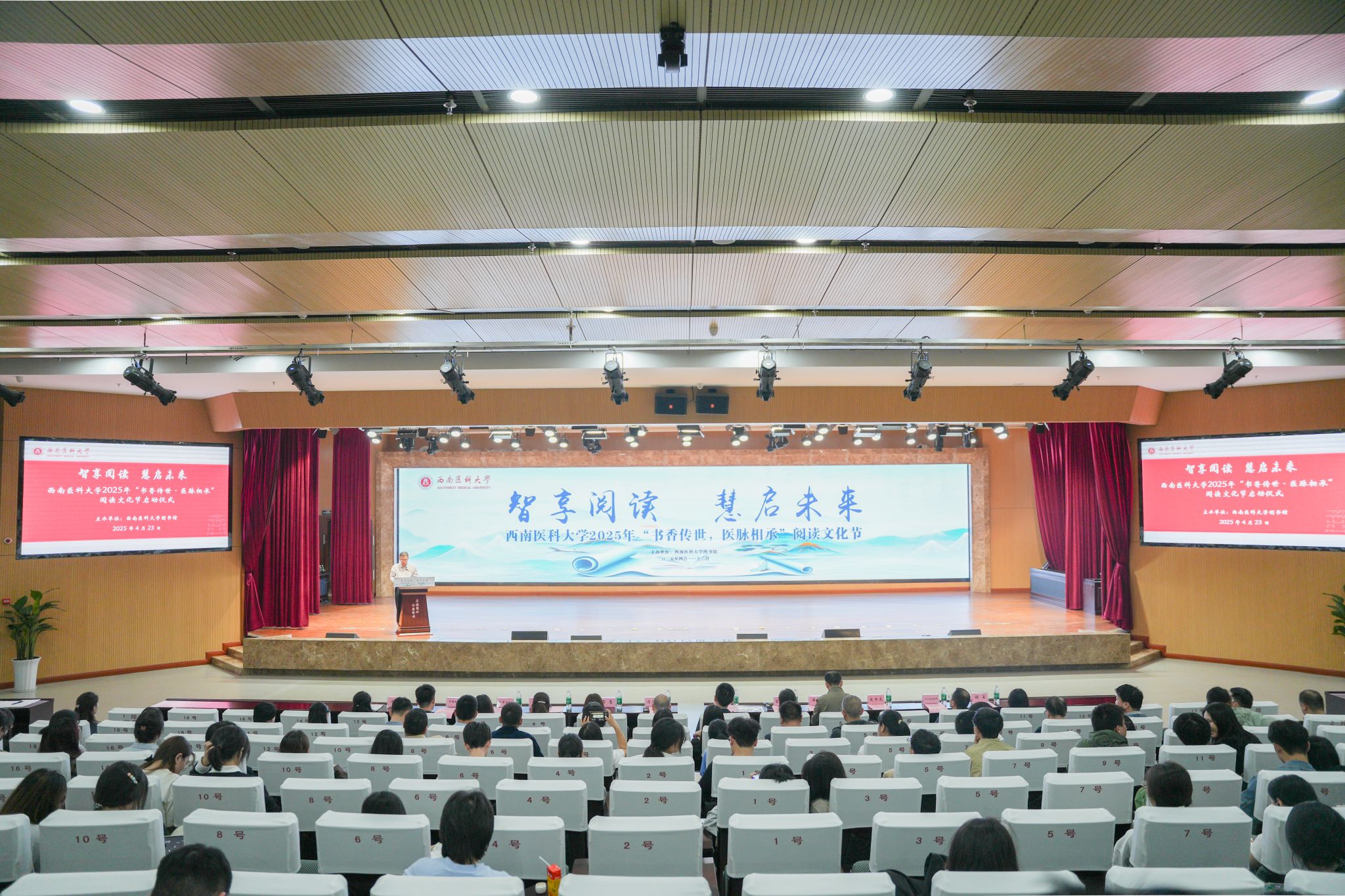 423日,学校2025书香传世,医脉相承阅读文化节启动仪式在城北校区第一学术报告厅举行。学校党委常委、副校长江涌,党委常委、宣传部部长冯天明,教辅后勤党委书记曾宪利、校团委书记石惠、信息与教育技术中心主任潘宏、学生工作部副部长易娟、图书馆馆长冯勤,获奖集体代表、获奖个人代表,教师代表、图书馆全体职工,相关社会企业代表及全校师生读者代表参加了启动仪式。启动仪式由图书馆副馆长史书龙主持。