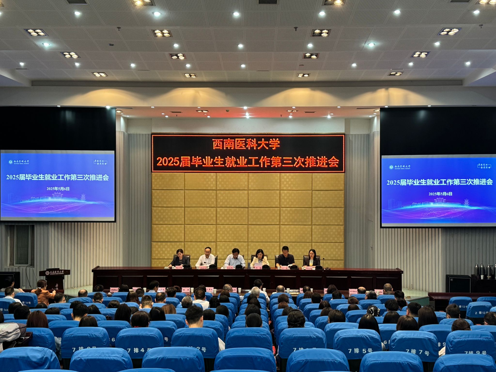 为抢抓就业关键期,扎实推进2025届毕业生就业工作,5月6日晚,学校在城北校区第二学术报告厅召开2025届毕业生就业工作第三次推进会。学校党委书记张春祥,党委常委、副校长聂敏海、江涌,相关职能部门负责人,各二级院系党政负责人、分管本科和研究生就业工作负责人及就业工作相关人员共90余人参加会议。会议由学校党委副书记、校长何涛主持。