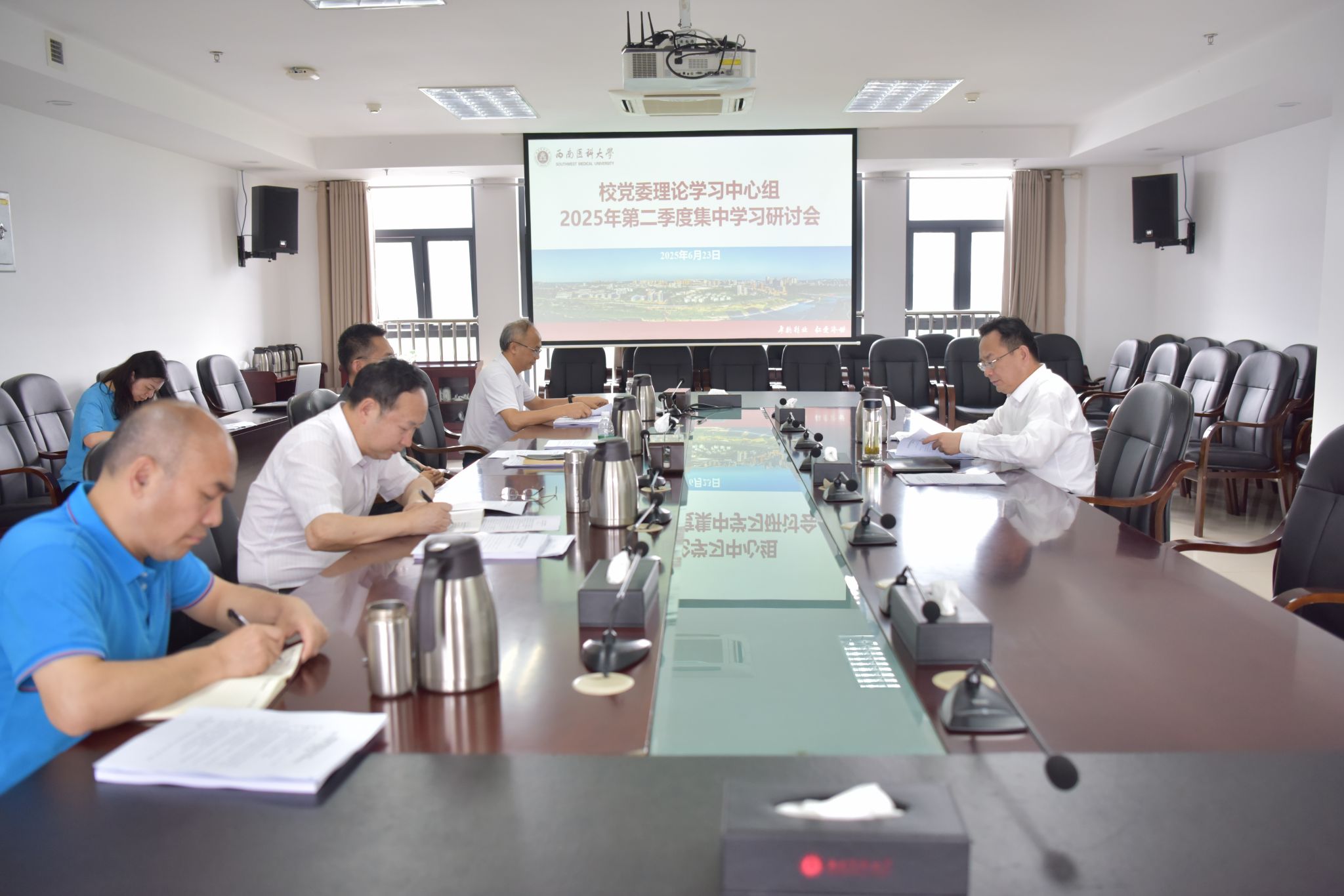 6月23日,校党委理论学习中心组在城北校区德诚楼621会议室召开校党委理论学习中心组2025年第二季度集中学习研讨会。校党委理论学习中心组成员、党政办公室主任参加会议。校党委书记、中心组组长张春祥主持会议。