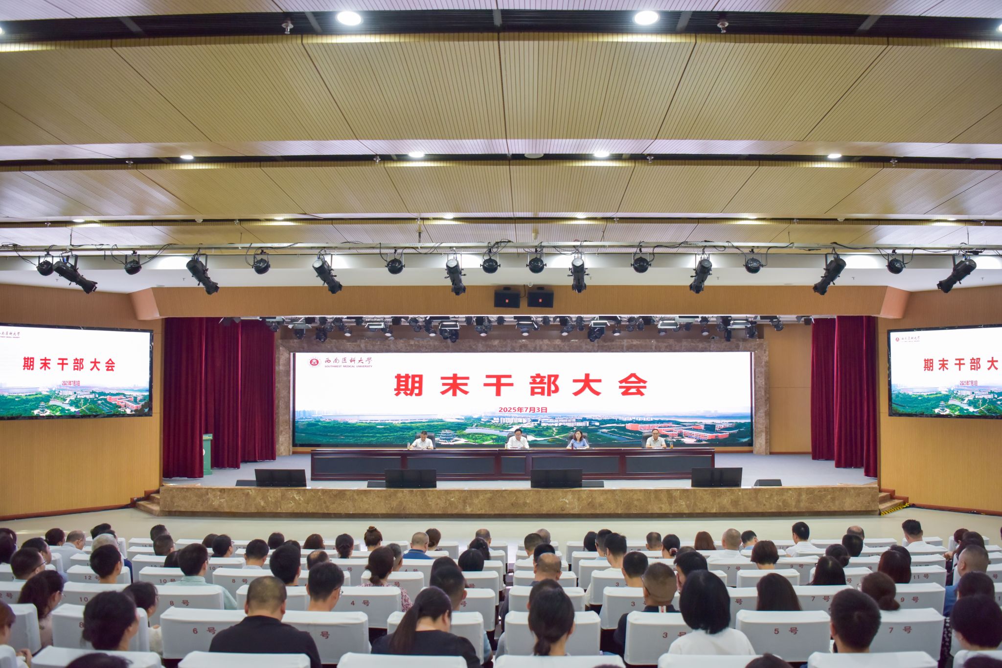 73日上午,学校在城北校区德诚楼学术报告厅召开期末干部大会,全体在校校领导,纳入学校干部管理序列的处、科级领导干部,校本部党支部书记、教研室和实验室负责人,附属医院、附属中医医院党委办公室、院长办公室负责人,附属口腔医院、附属第四医院(附属天府医院)党政办公室负责人,附属自贡医院主要负责人参加会议。会议由党委书记张春祥主持。
