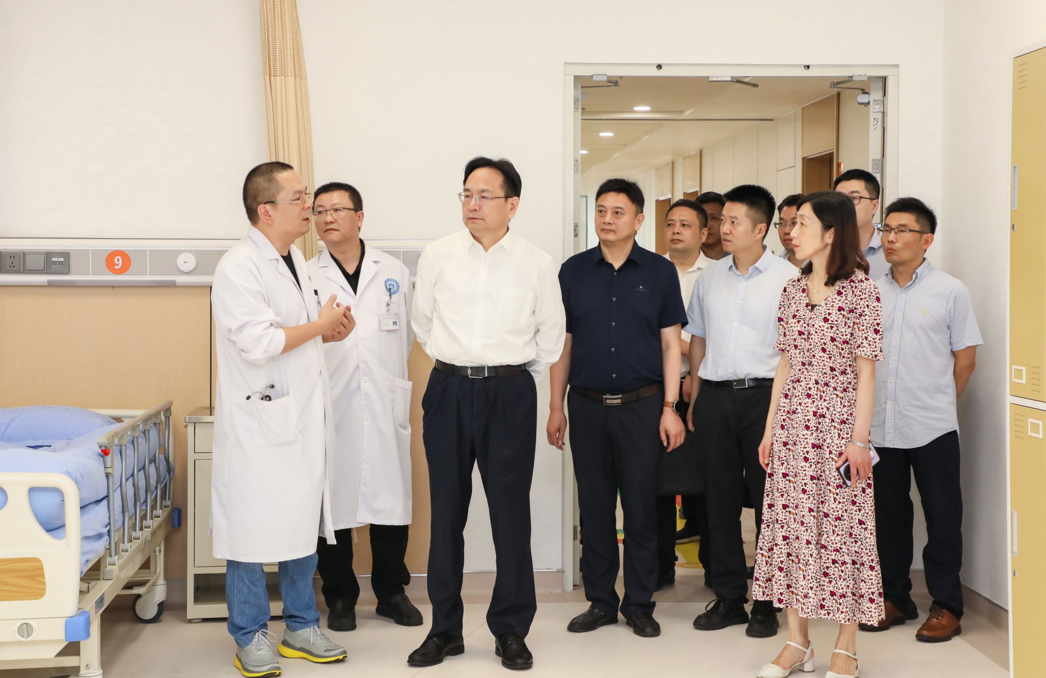 调研中,张春祥一行先后来到高依赖病房、内镜医学部、中医科、口腔科等科室,详细了解科室运行情况,实地察看手术室筹建进展,并慰问一线医护人员。