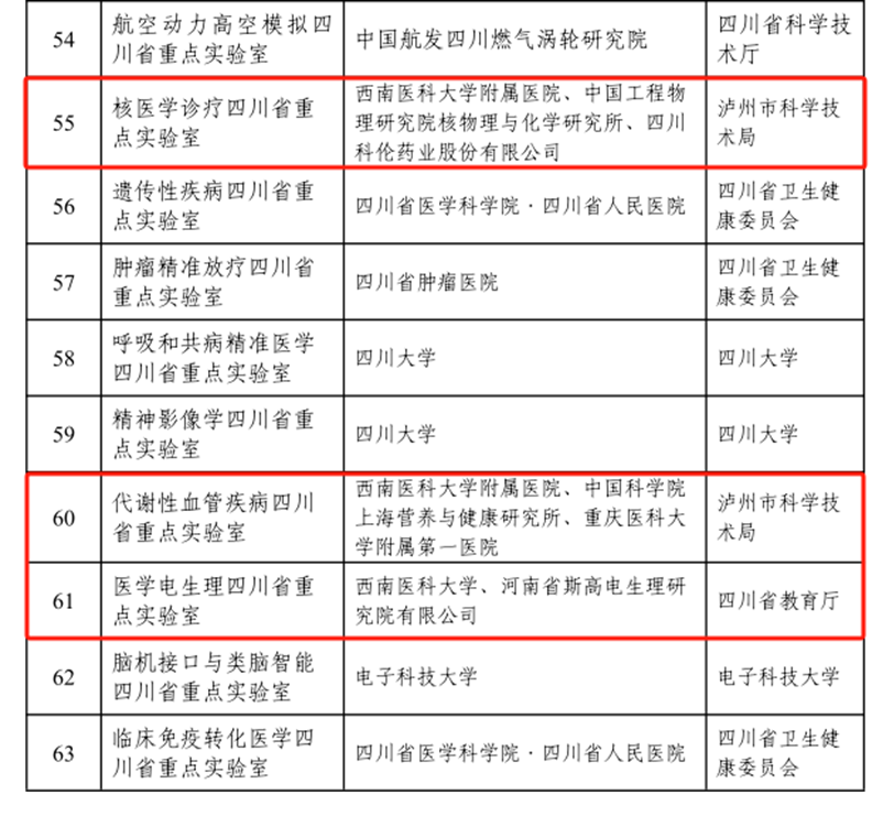 近日,新一轮《四川省科学技术厅关于公布四川省重点实验室优化重整结果》公布,beat365官网牵头建设的医学电生理、核医学诊疗、代谢性血管疾病四川省重点实验室,以及参建的中枢神经系统产品研发四川省重点实验室全部通过评审,进入优化重整后的省重点实验室序列。