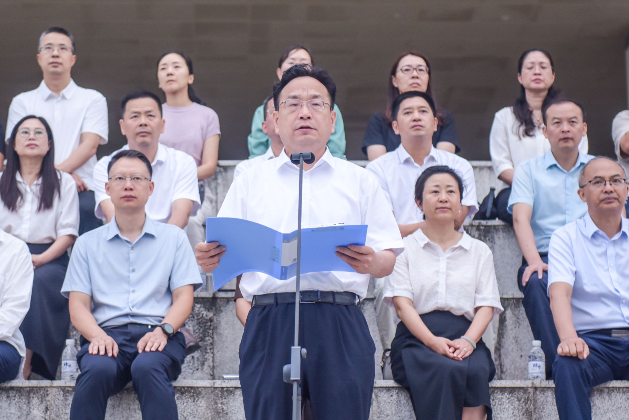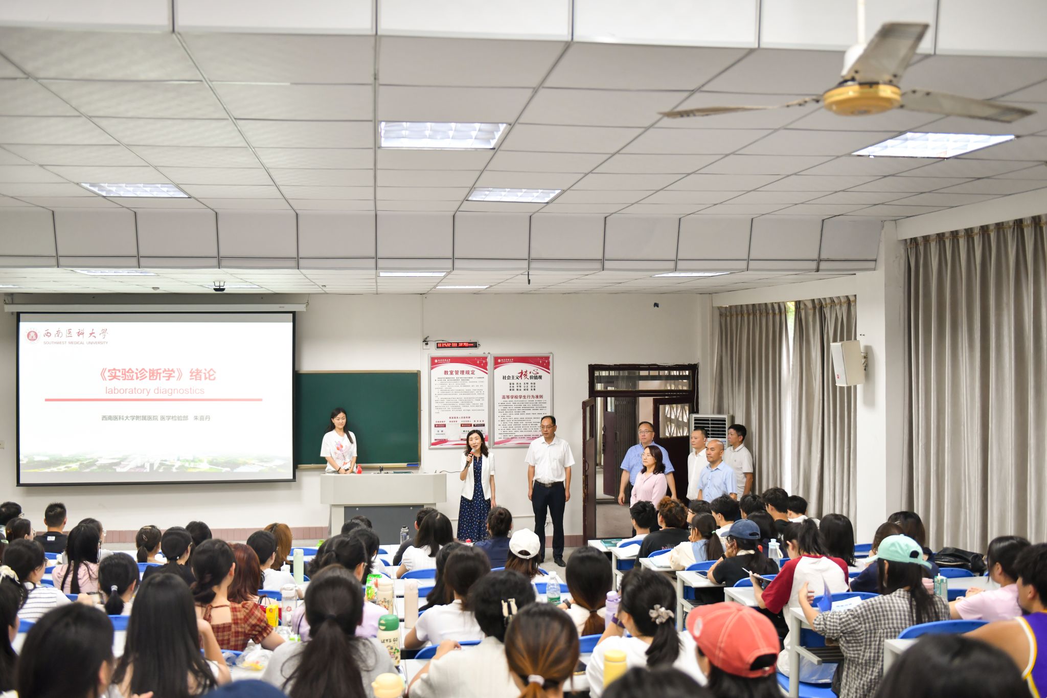 学校党委书记张春祥,学校党委副书记、校长何涛分别作了讲话。两位校领导回顾了一年来学校各项事业发展取得的可喜成绩,展望新学年,他们殷切寄语广大学子要胸怀家国,涵养品德,做德才兼备的新时代青年,希望同学们坚定理想信念,培养国际视野,关注全球健康挑战,展现中国青年的责任与担当;二要勤学善思,守正创新,做本领过硬的新时代青年,希望同学们树立终身学习理念,深耕专业领域,拓展跨学科视野,成长为适应时代需求的复合型医学人才;三要强健体魄,砥砺担当,做全面发展的新时代青年,希望同学们专注学业,积极参与体育锻炼、志愿服务、社会实践,注重心理健康,涵养社会责任感,传承“敬佑生命、救死扶伤”的医者精神。在新的学年里,以青春之我,赓续红色血脉,勇担时代使命,在实现健康中国梦的征程中书写无愧于历史的答卷!