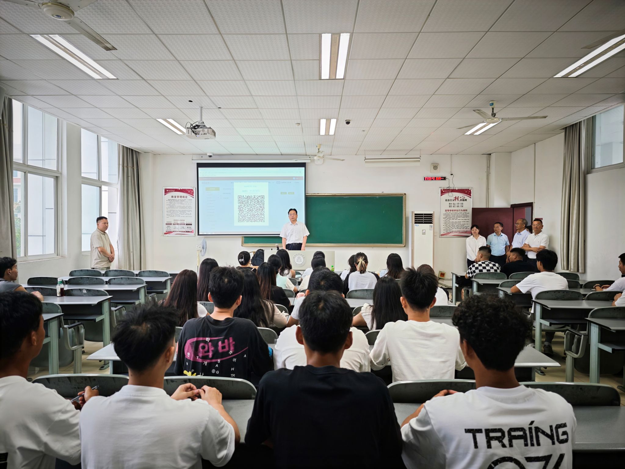 升旗仪式结束后,学校党政领导张春祥、何涛、蒋通荣、张永红、聂敏海、江涌、周翔宇率领相关职能部门负责人,分别深入忠山校区和城北校区各院系、部门检查教学与管理运行情况,重点关注师生到课情况。