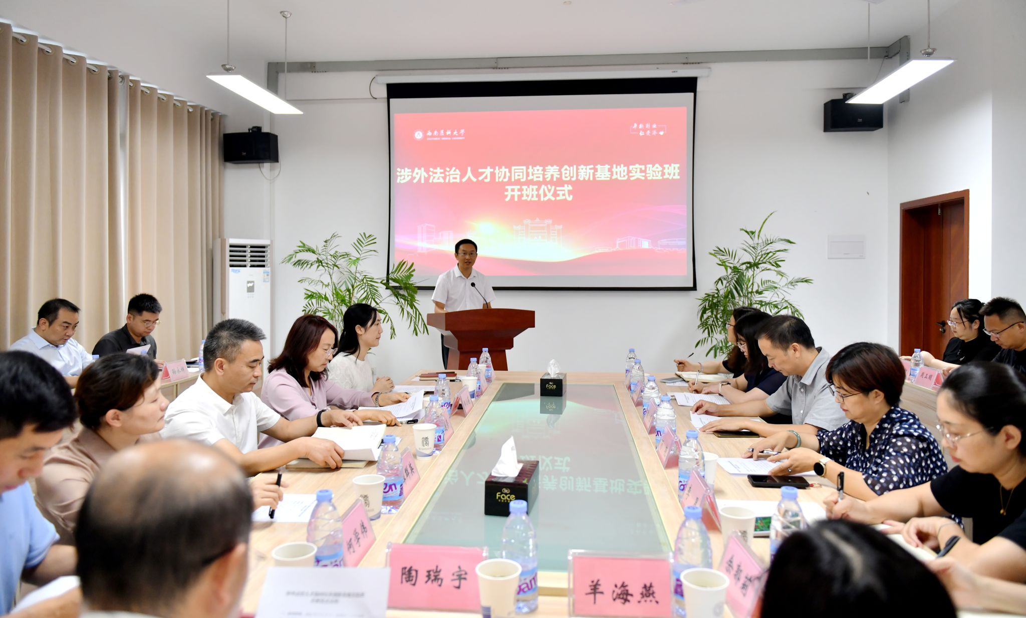 9月11日,beat365官方网站涉外法治人才协同培养创新基地实验班开班仪式在城北校区文渊楼529室举行。学校党委副书记蒋通荣,相关职能部门负责人、法学院党政领导、教研室与实验室主任、教师代表及首届实验班全体学生参加仪式。仪式由法学院党委副书记、院长罗刚主持。