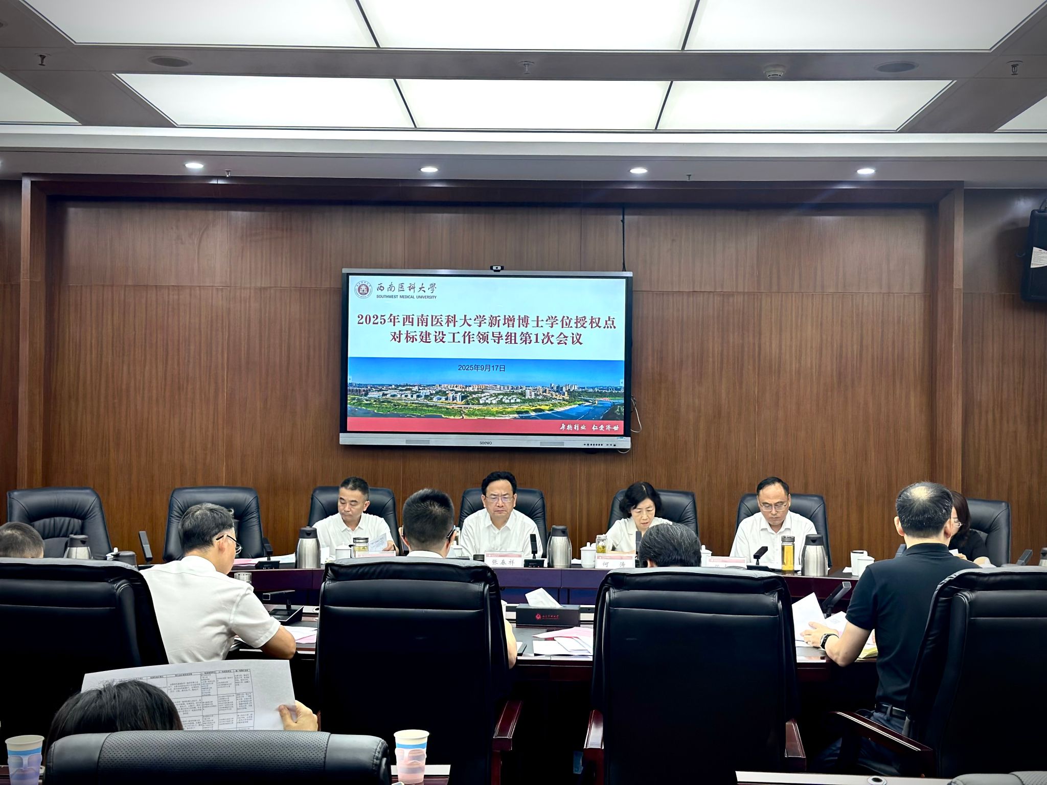 9月17日,学校在城北校区第一会议室召开新增博士学位授权点对标建设工作领导组第1次会议。在校校领导、相关单位(部门)负责人参加会议。会议由学校党委副书记、校长何涛主持。