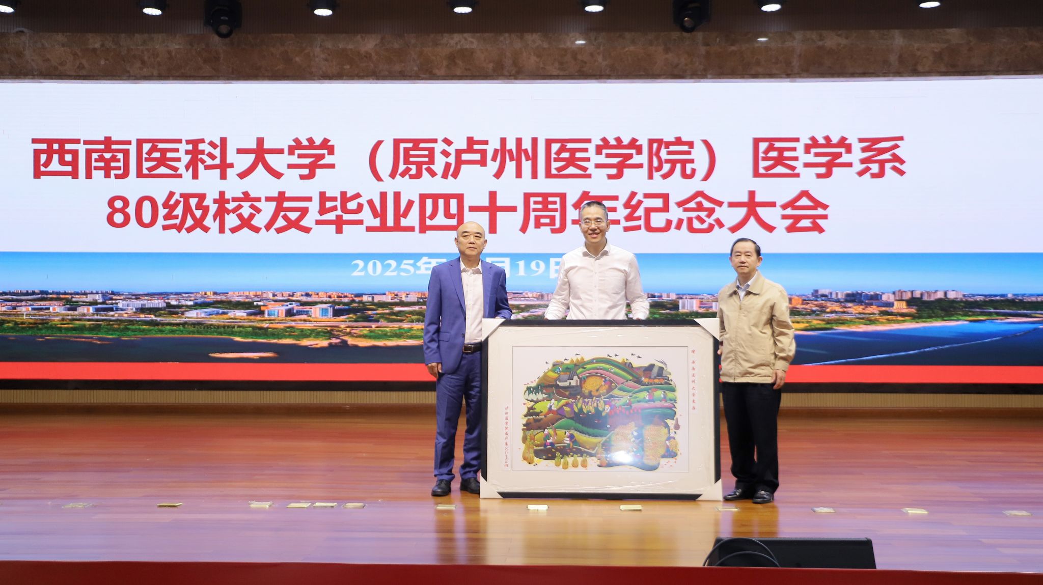 10月19日,beat365官方网站(原泸州医学院)医学系医学专业80级校友毕业四十周年纪念大会在城北校区第一学术报告厅隆重举行。在校校领导、相关职能部门负责人与医学系80级150余名返校校友欢聚一堂,共忆青葱岁月,共话母校发展,共叙同窗情谊。