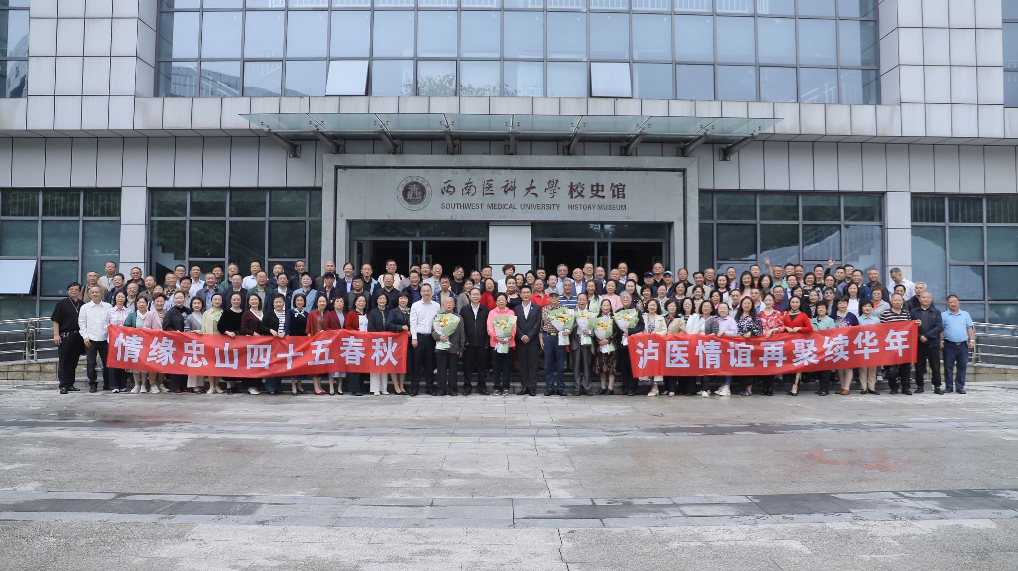 大会在校歌声中落幕。会后,全体参会人员在校史馆门前合影留念,定格下这一跨越四十年的相聚时刻。