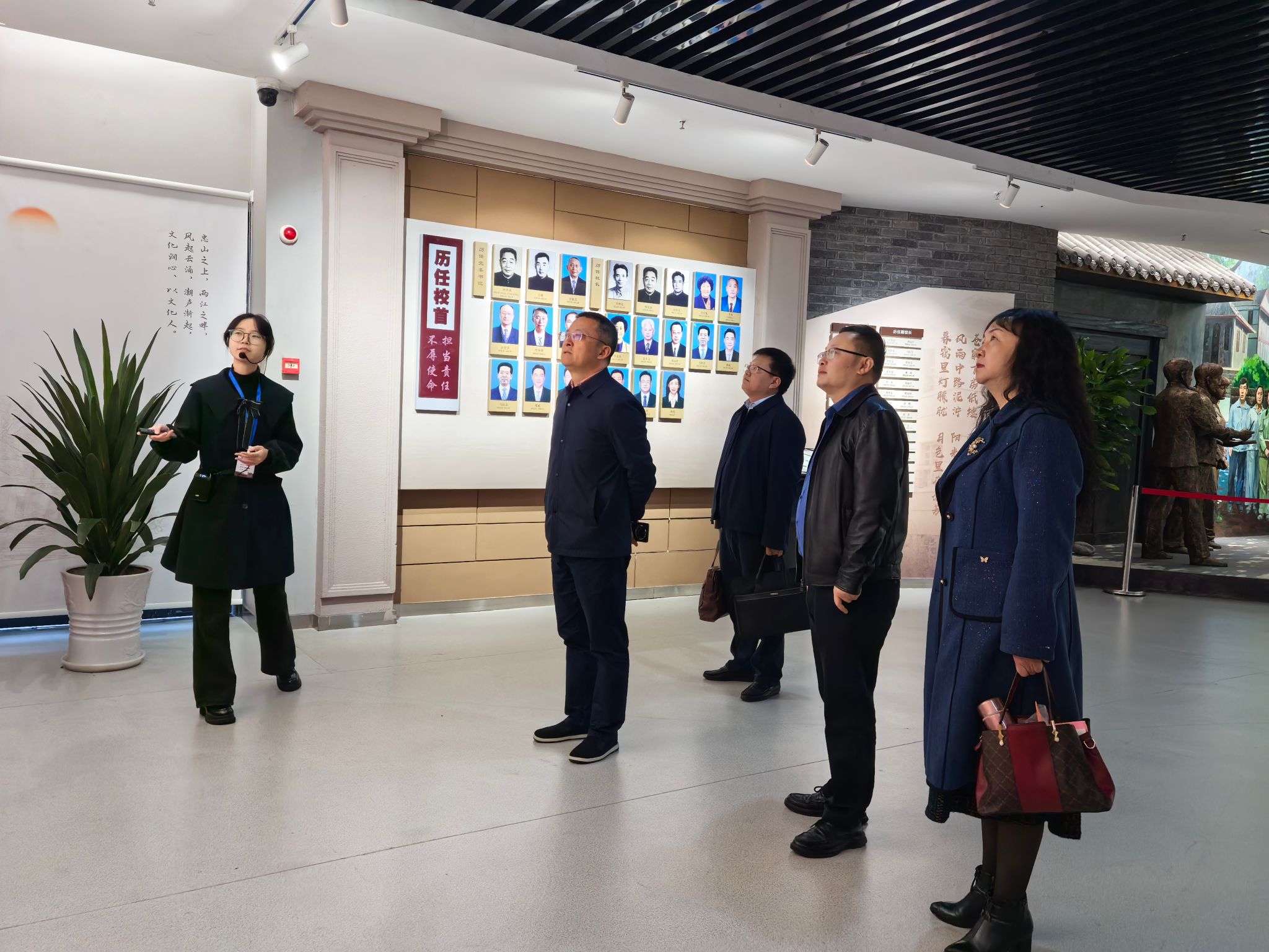 座谈会后,罗茂陪同黄诚一行参观了学校校史馆。