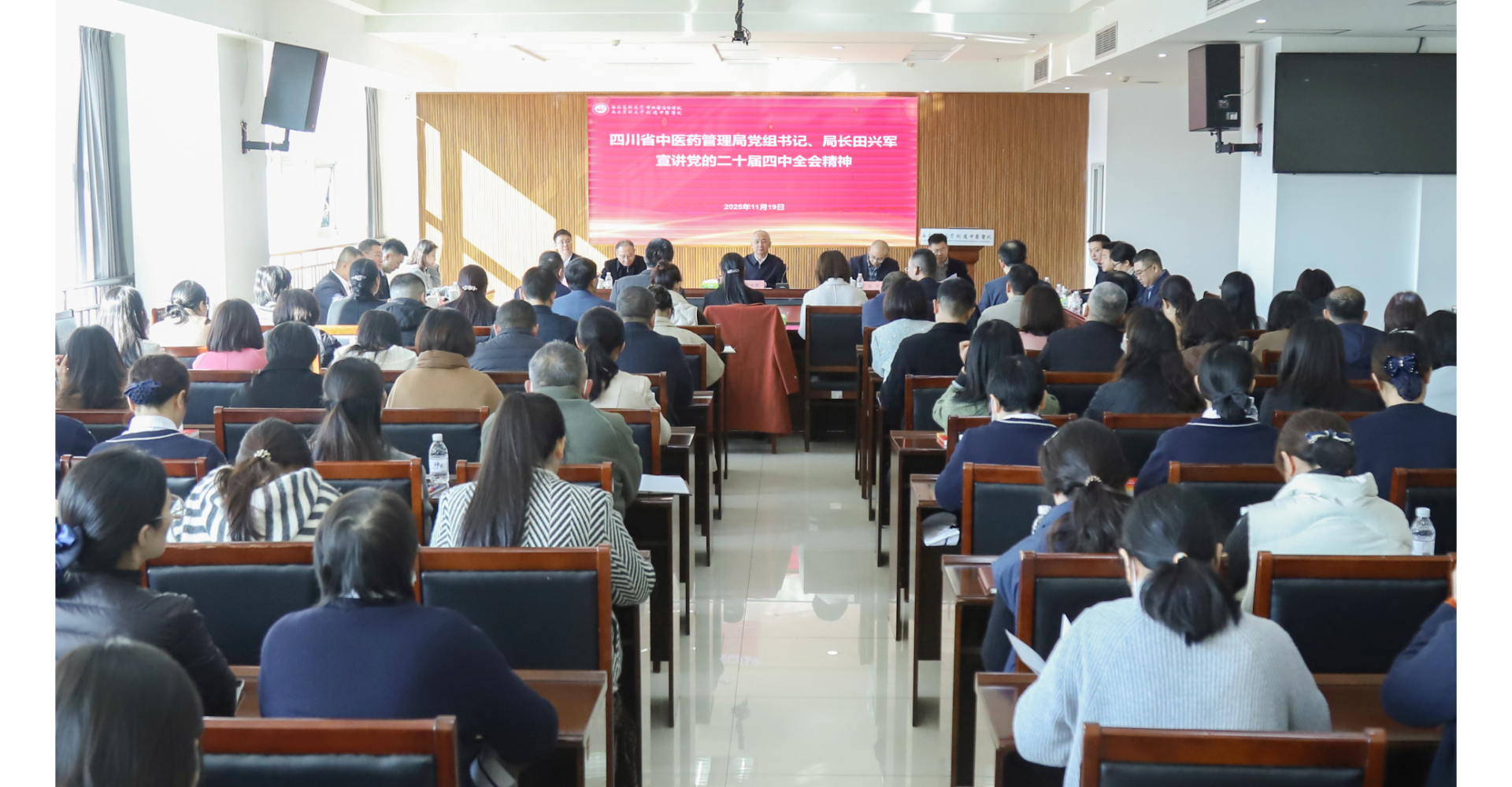 11月19日,四川省中医药局党组书记、局长田兴军到附属中医医院开展党的二十届四中全会精神宣讲。田兴军以《深学细悟全会精神 勇担时代发展使命,在新征程中彰显中医药新担当新作为》为题,对党的二十届四中全会进行了深入浅出的宣讲。泸州市副市长罗素平,泸州市卫健委主任、中医药管理局局长曾妍,beat365官方网站党委常委、副校长江涌及附属中医医院院领导班子成员及科级干部、党支部书记代表等参加了宣讲会。