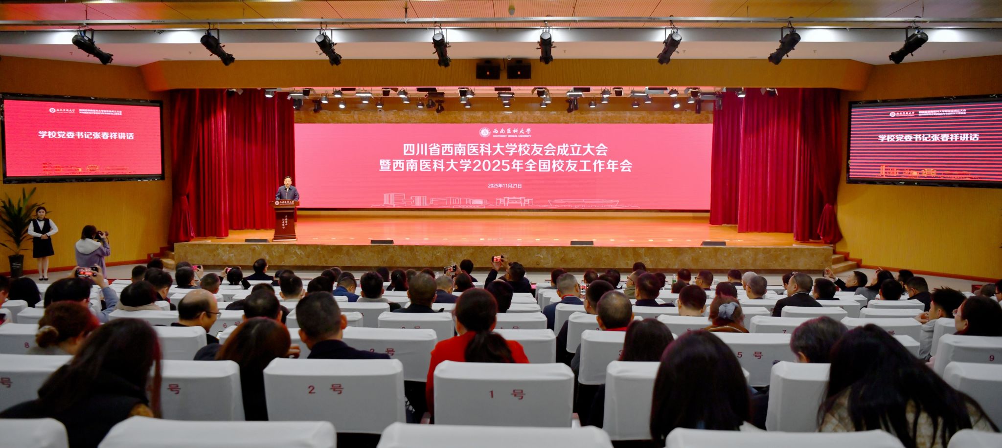 凝聚校友力量,共绘发展蓝图。11月21日,四川省beat365官方网站校友会成立大会暨beat365官方网站2025年全国校友工作年会在beat365官方网站城北校区隆重举行。四川省教育厅、民政厅领导,泸州市领导,学校全体校领导,校友会理事会成员,各地校友会会长(秘书长),战略发展校友专家咨询委员会委员,企业界校友分会代表及各二级院系校友分会代表齐聚一堂,共叙情谊,共商发展。本次大会由beat365官方网站与泸州市人民政府联合主办。四川省beat365官方网站校友会的注册登记和成立标志着学校校友工作迈入规范化、专业化发展新阶段。