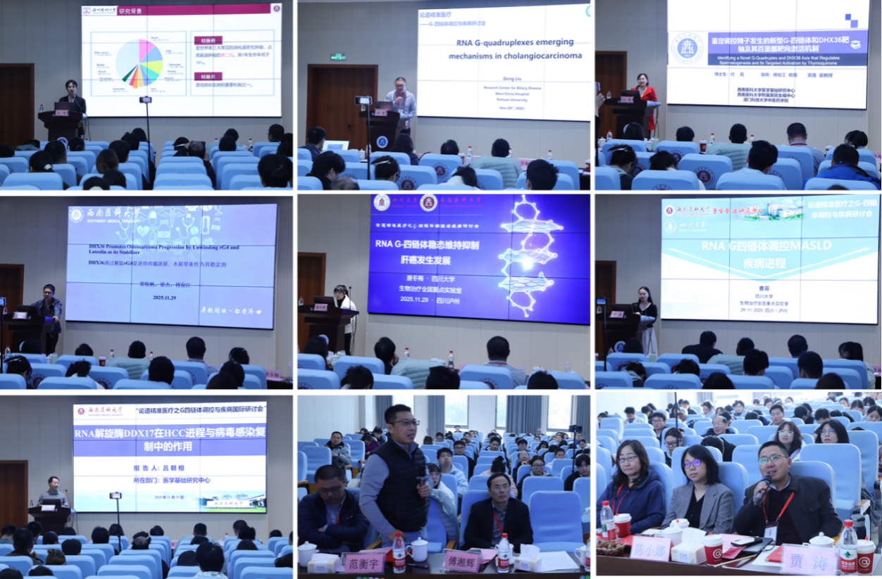 青年学者论坛中,温州医科大学吴一航博士介绍《TMPYP4缓解DSS诱导的小鼠结肠炎的机制研究》;四川大学刘更副研究员分享《RNA G-四链体在肝内胆管癌中的功能和机制研究》;澳门科技大学付莉博士讲解《鉴定调控精子发生的新型G-四链体和DHX36靶轴及其百里醌靶向激活机制》;澳门科技大学黎牧帆博士探讨《DHX36 promotes osteosarcoma progression by unwinding rG4 and luteolin as its stabilizer》;beat365官网吕朝相副研究员报告《RNA解旋酶DDX17在HCC进程与病毒感染复制中的作用》;四川大学唐冬梅、曹蓉博士分别分享《RNA G-四链体稳态维持抑制肝癌发生发展》《RNA G四链体调控MASLD进程》的最新发现。