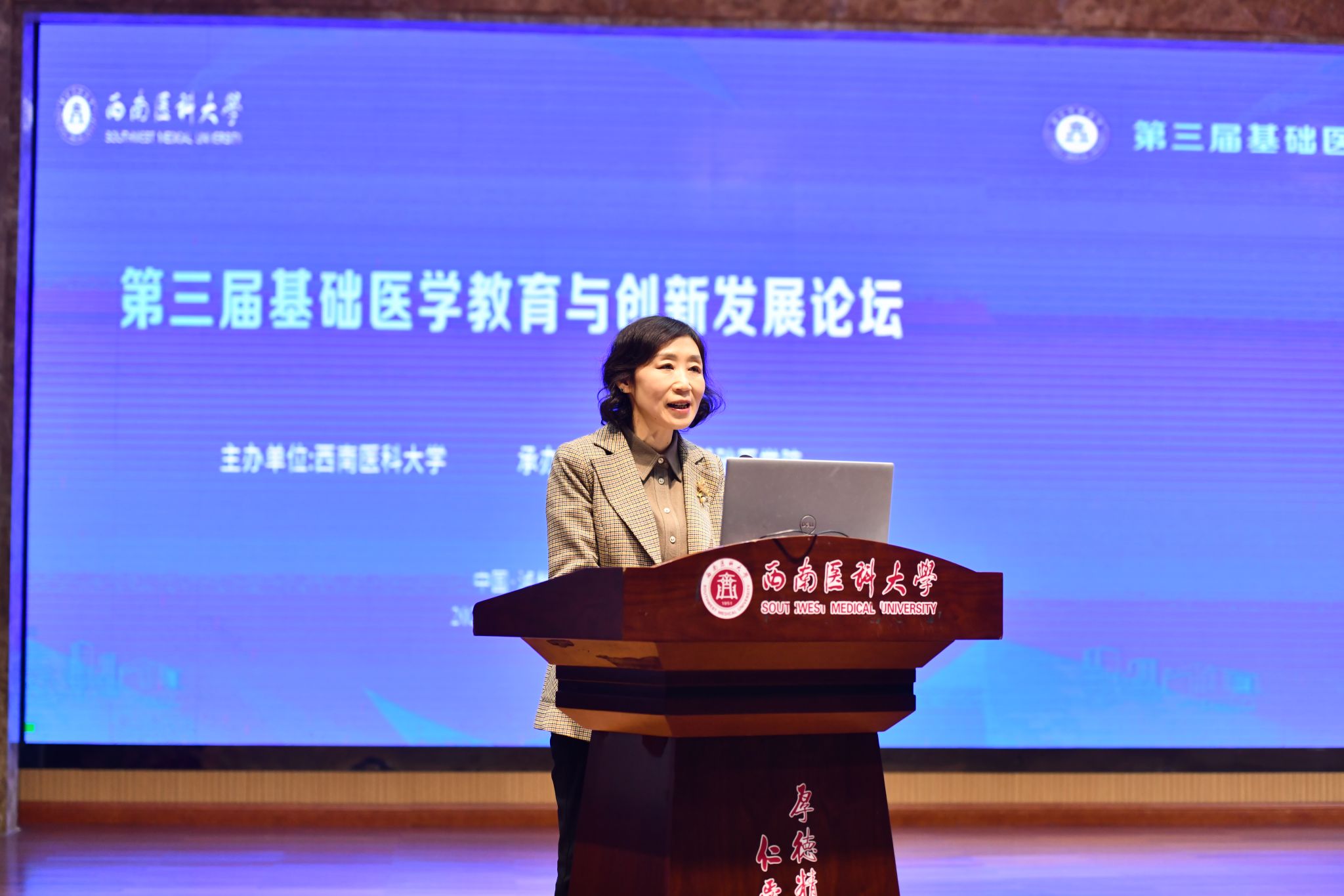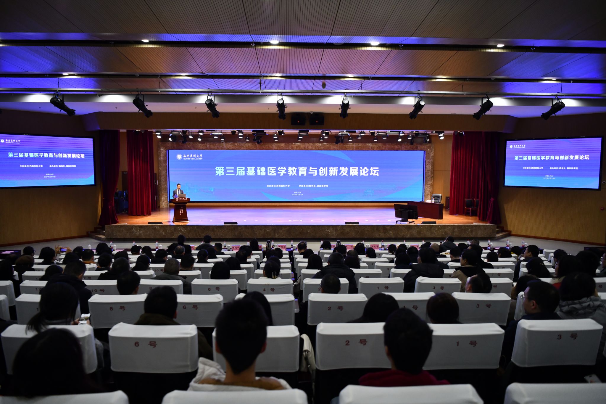12月14日,由学校主办、教务处和基础医学院承办的第三届基础医学教育与创新发展论坛”在城北校区第一学术报告厅举行。本次论坛以“基础医学守正创新、赋能发展”为主题,特邀国内三位顶尖专家学者作专题报告,共同探讨数智化浪潮下医学教育改革的路径与挑战。基础医学院400余名师生积极参与,学校党委副书记、校长何涛,教务处处长郑小莉,副处长汤军、雷小平,基础医学院全体院领导出席论坛活动。